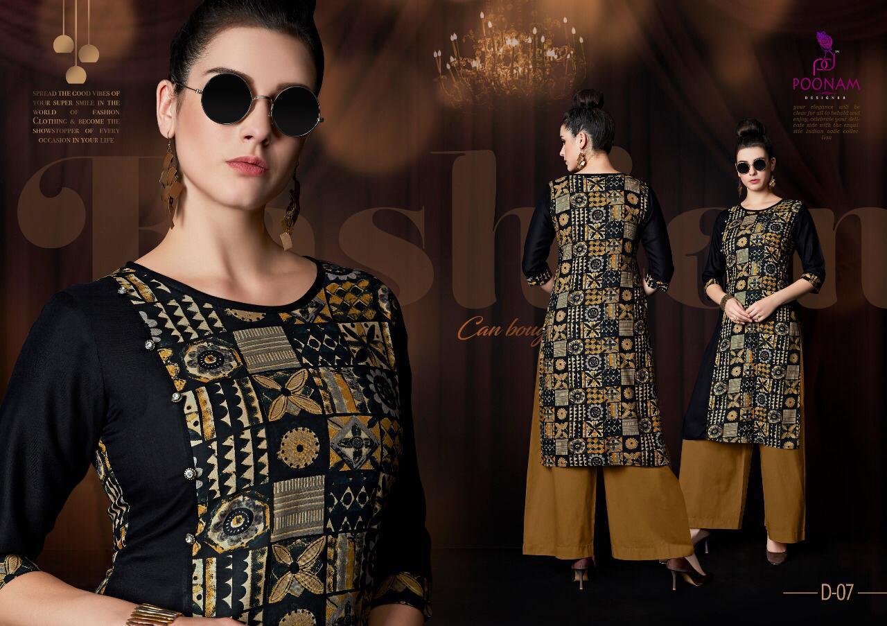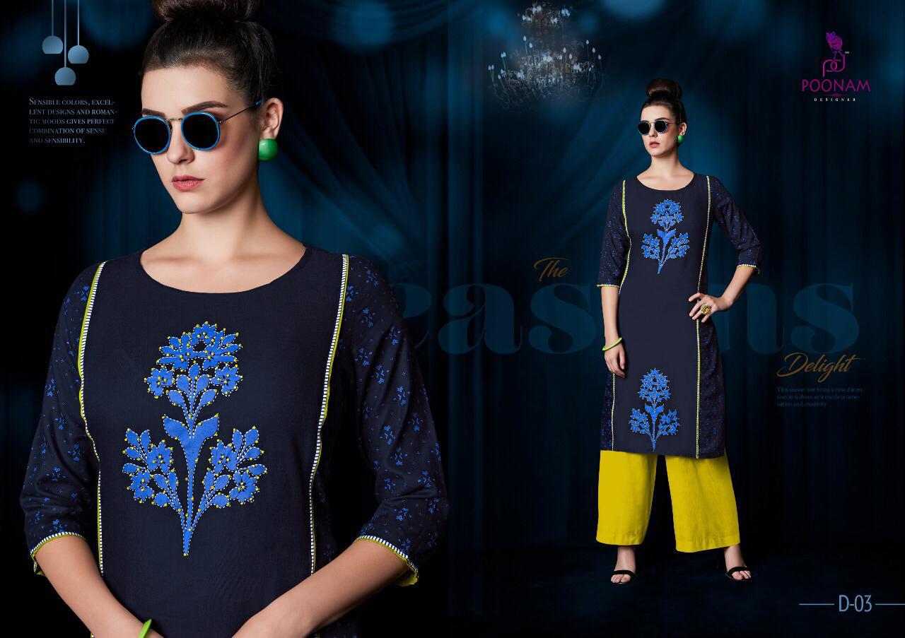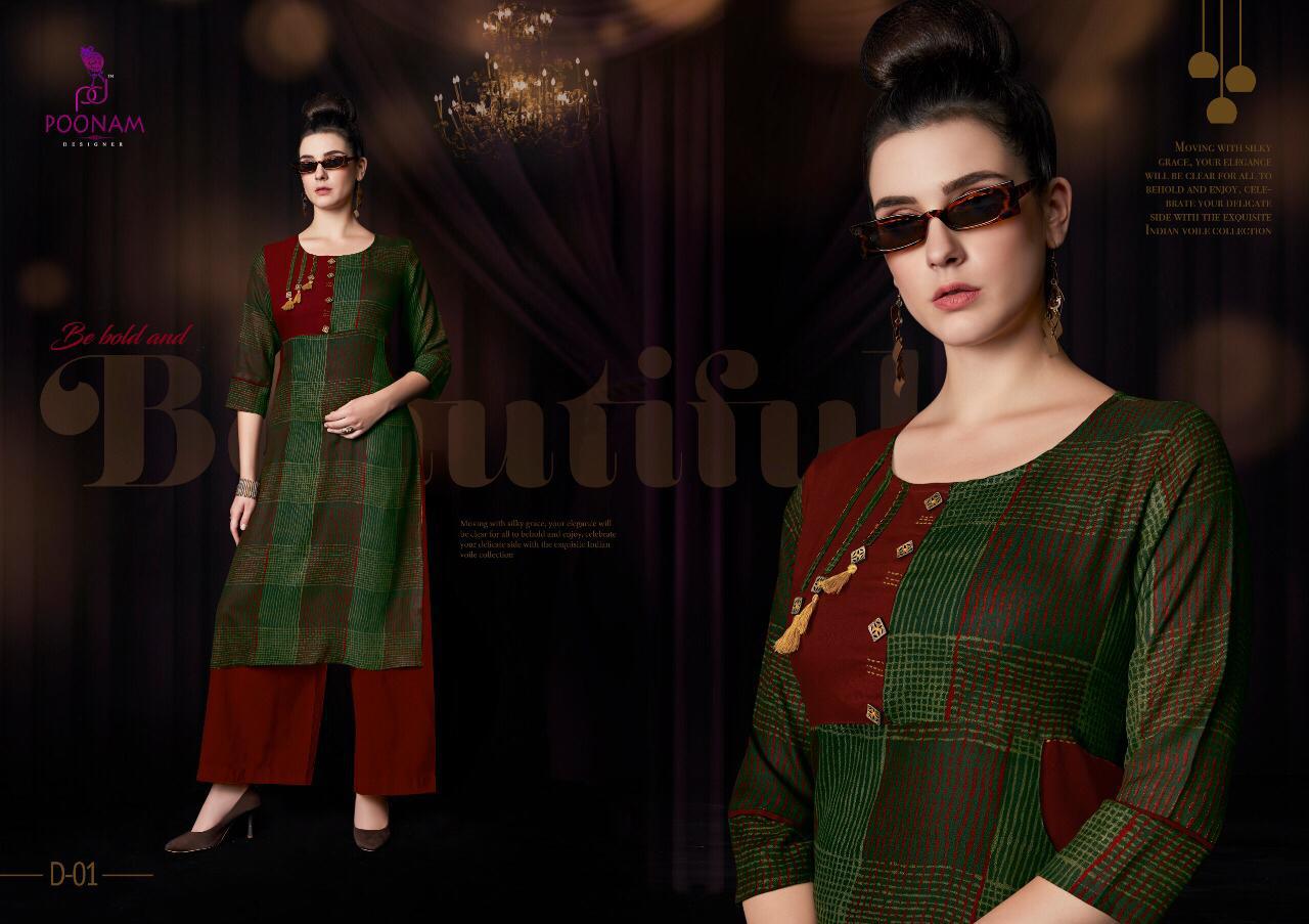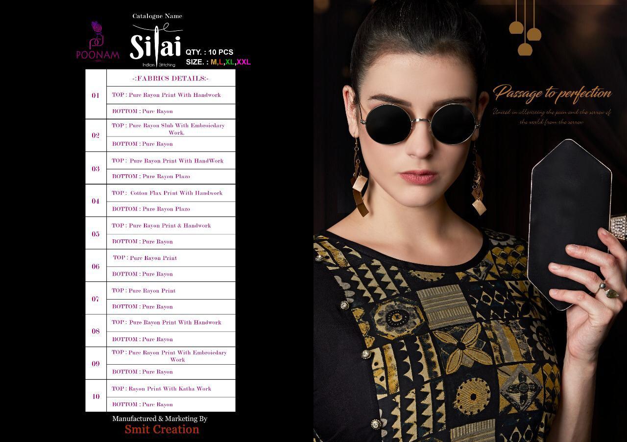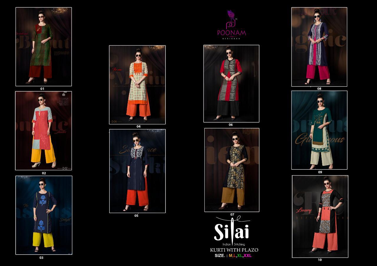 Buy Online Silai By Poonam 01 Series Fancy Reyon Kurti With Plazzo Collection Wholesale Dealer Surat 10 Pcs of Full Catalogue at Wholesale Price. Looking for Silai By Poonam 01 Series Fancy Reyon Kurti With Plazzo Collection Wholesale Dealer Surat Full Catalouge at Best Price? Buy Now Silai By Poonam 01 Series Fancy Reyon Kurti With Plazzo Collection Wholesale Dealer Surat at Wholesale Rate of Rs 5850 with Total 10 Pcs from authroized dealer and supplier of Poonam designer Brand. Cost of Each piece is just only Rs 585 which is very low and affordable price to resale the product in your retail store ,This is Surat based Wholesale Supplier & Dealer of Poonam designer Brand. Click on Brand name to Know more about Poonam designer Brand's products.Call or Whatsapp on 9898838984 for booking or enquiry