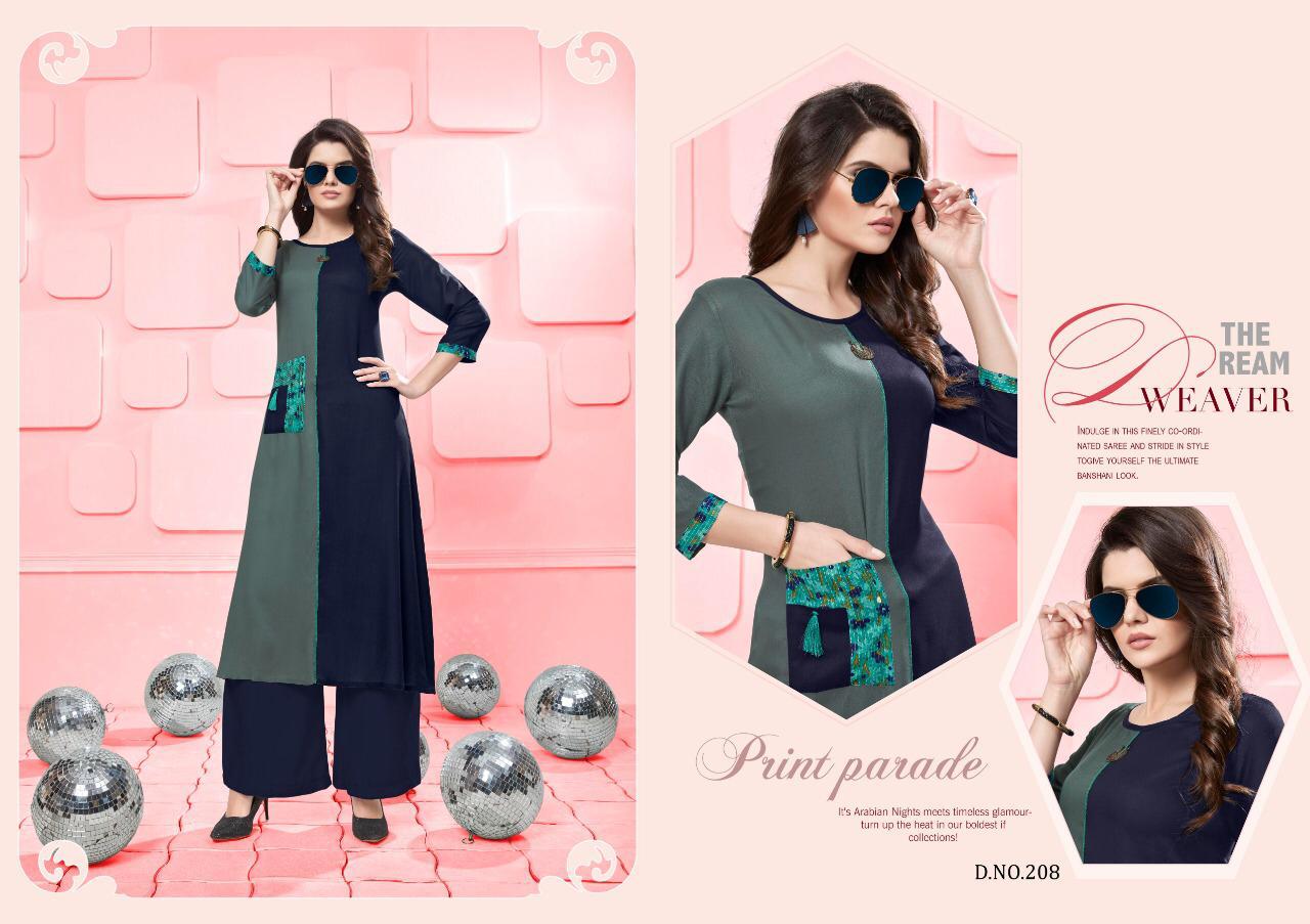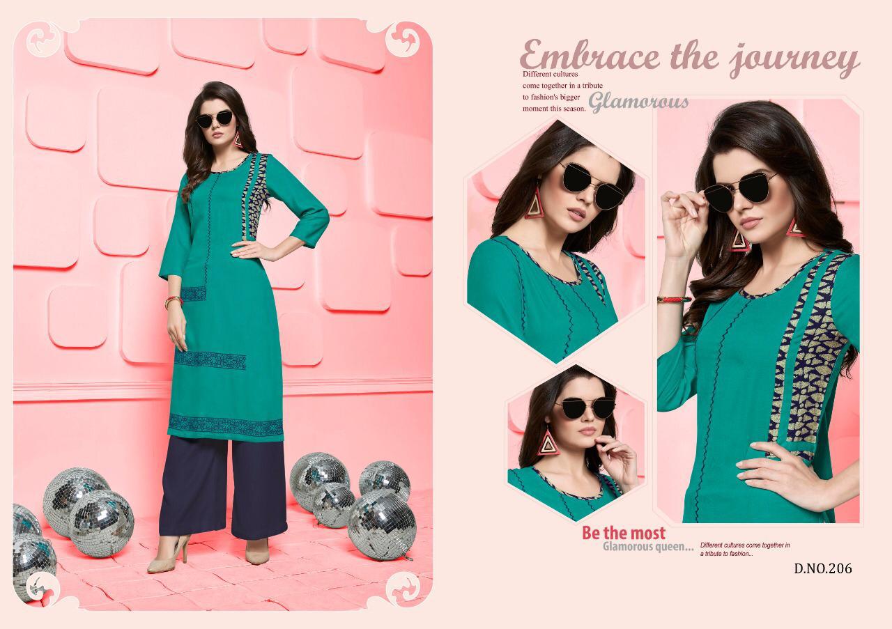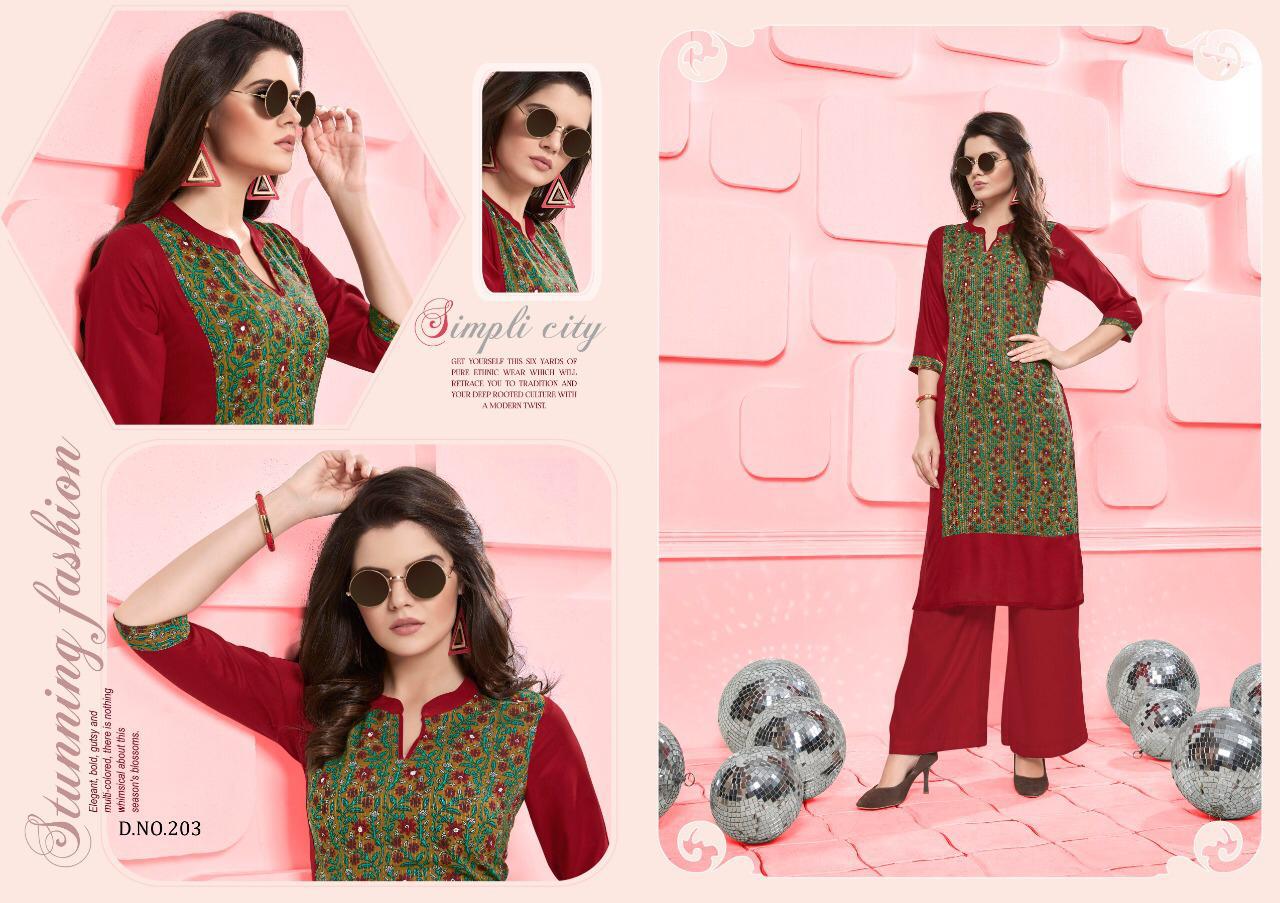 Buy Online Silai Vol 2 By Poonam Designer 201 Series Fancy Reyon Kurti With Plazzo Collection Wholesale Dealer Surat 8 Pcs of Full Catalogue at Wholesale Price. Looking for Silai Vol 2 By Poonam Designer 201 Series Fancy Reyon Kurti With Plazzo Collection Wholesale Dealer Surat Full Catalouge at Best Price? Buy Now Silai Vol 2 By Poonam Designer 201 Series Fancy Reyon Kurti With Plazzo Collection Wholesale Dealer Surat at Wholesale Rate of Rs 4680 with Total 8 Pcs from authroized dealer and supplier of Poonam designer Brand. Cost of Each piece is just only Rs 585 which is very low and affordable price to resale the product in your retail store ,This is Surat based Wholesale Supplier & Dealer of Poonam designer Brand. Click on Brand name to Know more about Poonam designer Brand's products.Call or Whatsapp on 9898838984 for booking or enquiry