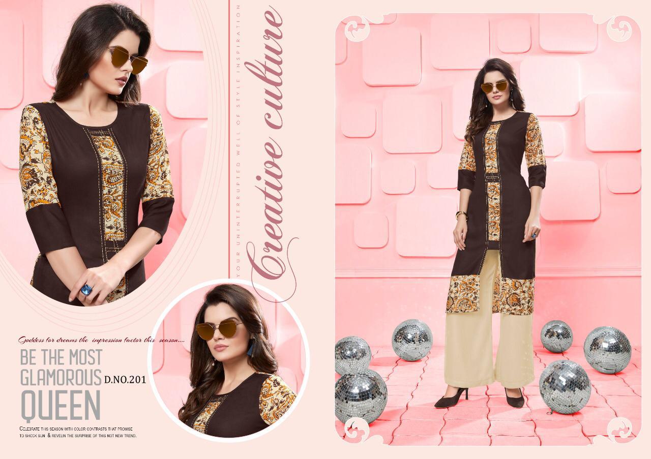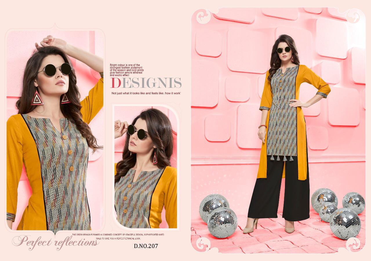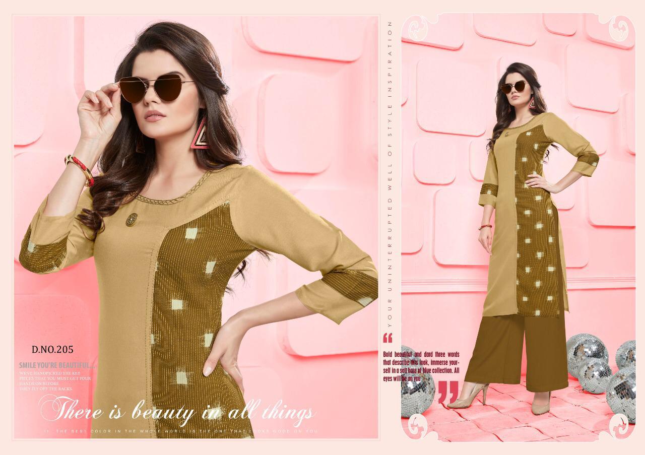 Silai Vol 2 By Poonam Designer 201 Series Fancy Reyon Kurti With Plazzo Collection Wholesale Dealer Surat