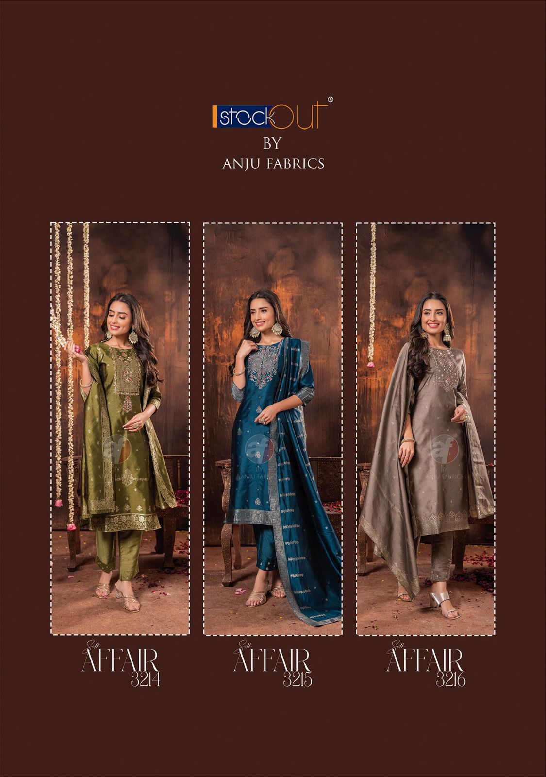 Buy Online Silk Affair Vol 2 Anju Fabric Jaquard Silk Top Bottom Duppata 6 Pcs of Full Catalogue at Wholesale Price. Looking for Silk Affair Vol 2 Anju Fabric Jaquard Silk Top Bottom Duppata Full Catalouge at Best Price? Buy Now Silk Affair Vol 2 Anju Fabric Jaquard Silk Top Bottom Duppata at Wholesale Rate of Rs 0 with Total 6 Pcs from authroized dealer and supplier of Brand. Cost of Each piece is just only Rs 0 which is very low and affordable price to resale the product in your retail store ,This is Surat based Wholesale Supplier & Dealer of Brand. Click on Brand name to Know more about Brand's products.Call or Whatsapp on 9898838984 for booking or enquiry