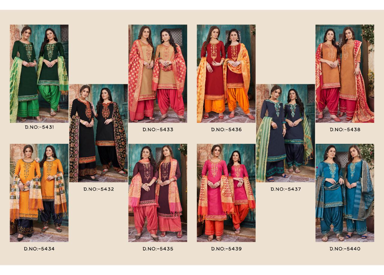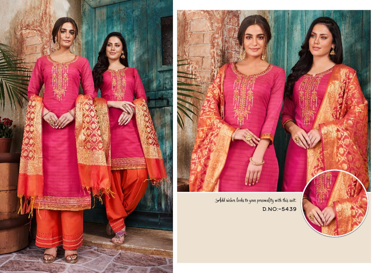 ? *Kessi Fabrics Pvt. Ltd.* has launched _Catalog name_ : *Silk Patiala Vol - 3* ? _Fabric Details_ ? ?Top:- Chanderi with Khatli Work & Cotton Mal Inner ?Bottom:- Cotton Silk with Work ?Dupatta:- Banarasi Silk ?Total Design:- 10 ? Rate :- 899/- Set to set . GST 5 Percent Extra ?Dispatching 5 to 6 days later ?Booking started from now... ?Order yours soon.... |
