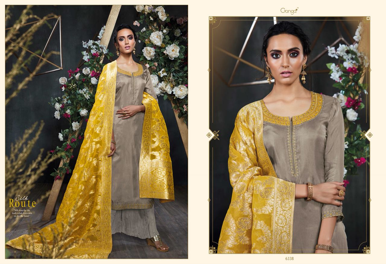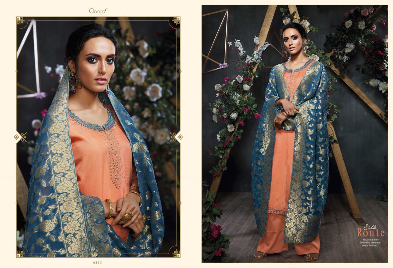 Buy Online Silk Route By Ganga Designer Embroidered Party Wear Suits Wholesale Supplier Nd Dealer Gujarat 6 Pcs of Full Catalogue at Wholesale Price. Looking for Silk Route By Ganga Designer Embroidered Party Wear Suits Wholesale Supplier Nd Dealer Gujarat Full Catalouge at Best Price? Buy Now Silk Route By Ganga Designer Embroidered Party Wear Suits Wholesale Supplier Nd Dealer Gujarat at Wholesale Rate of Rs 13320 with Total 6 Pcs from authroized dealer and supplier of GANGA Brand. Cost of Each piece is just only Rs 2220 which is very low and affordable price to resale the product in your retail store ,This is Surat based Wholesale Supplier & Dealer of GANGA Brand. Click on Brand name to Know more about GANGA Brand's products.Call or Whatsapp on 9898838984 for booking or enquiry