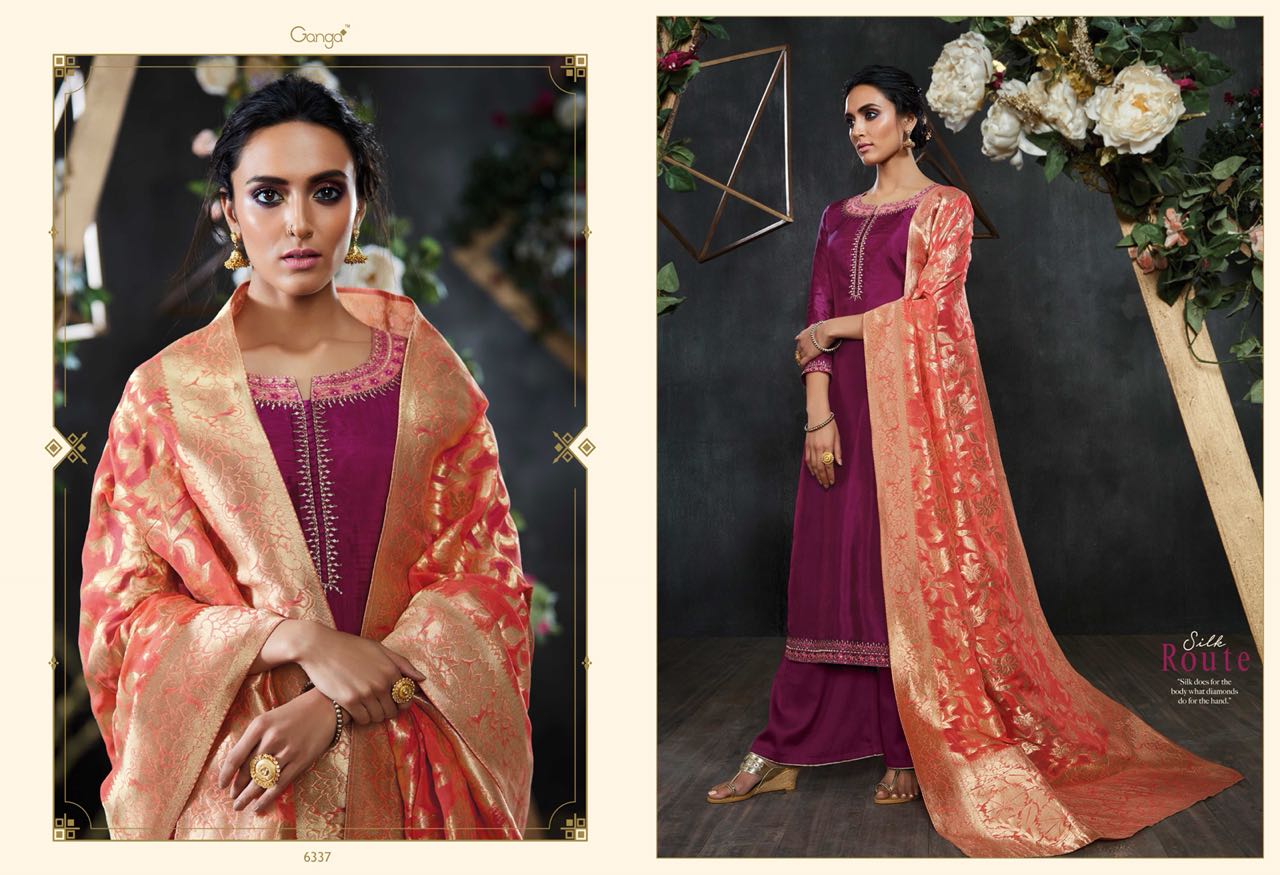 Silk Route By Ganga Designer Embroidered Party Wear Suits Wholesale Supplier Nd Dealer Gujarat