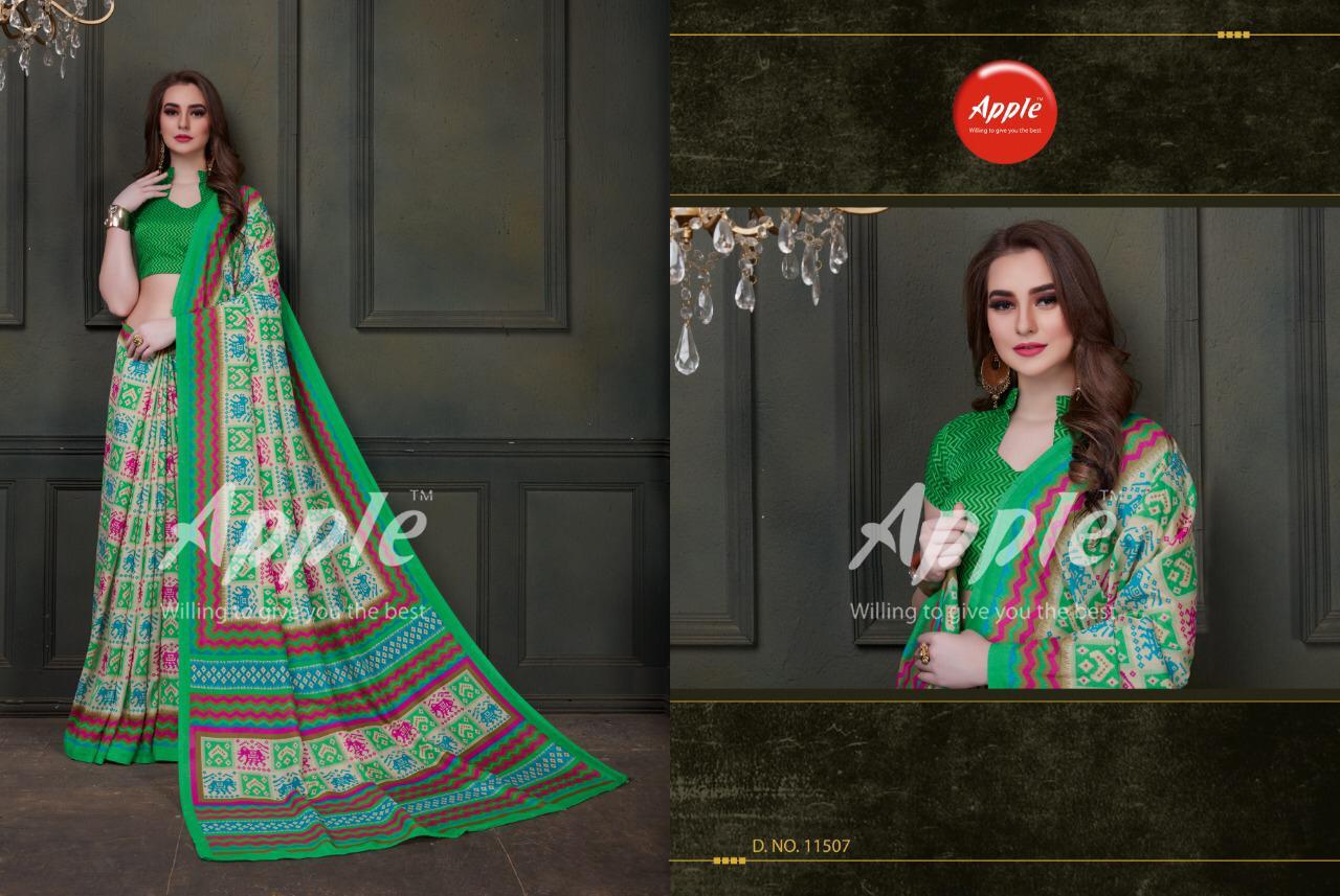 Buy Online Silk Touch By Apple 11501 Series Fancy Silk Printed Saree Catlog Wholesale Dealer Surat 13 Pcs of Full Catalogue at Wholesale Price. Looking for Silk Touch By Apple 11501 Series Fancy Silk Printed Saree Catlog Wholesale Dealer Surat Full Catalouge at Best Price? Buy Now Silk Touch By Apple 11501 Series Fancy Silk Printed Saree Catlog Wholesale Dealer Surat at Wholesale Rate of Rs 5395 with Total 13 Pcs from authroized dealer and supplier of APPLE Brand. Cost of Each piece is just only Rs 415 which is very low and affordable price to resale the product in your retail store ,This is Surat based Wholesale Supplier & Dealer of APPLE Brand. Click on Brand name to Know more about APPLE Brand's products.Call or Whatsapp on 9898838984 for booking or enquiry