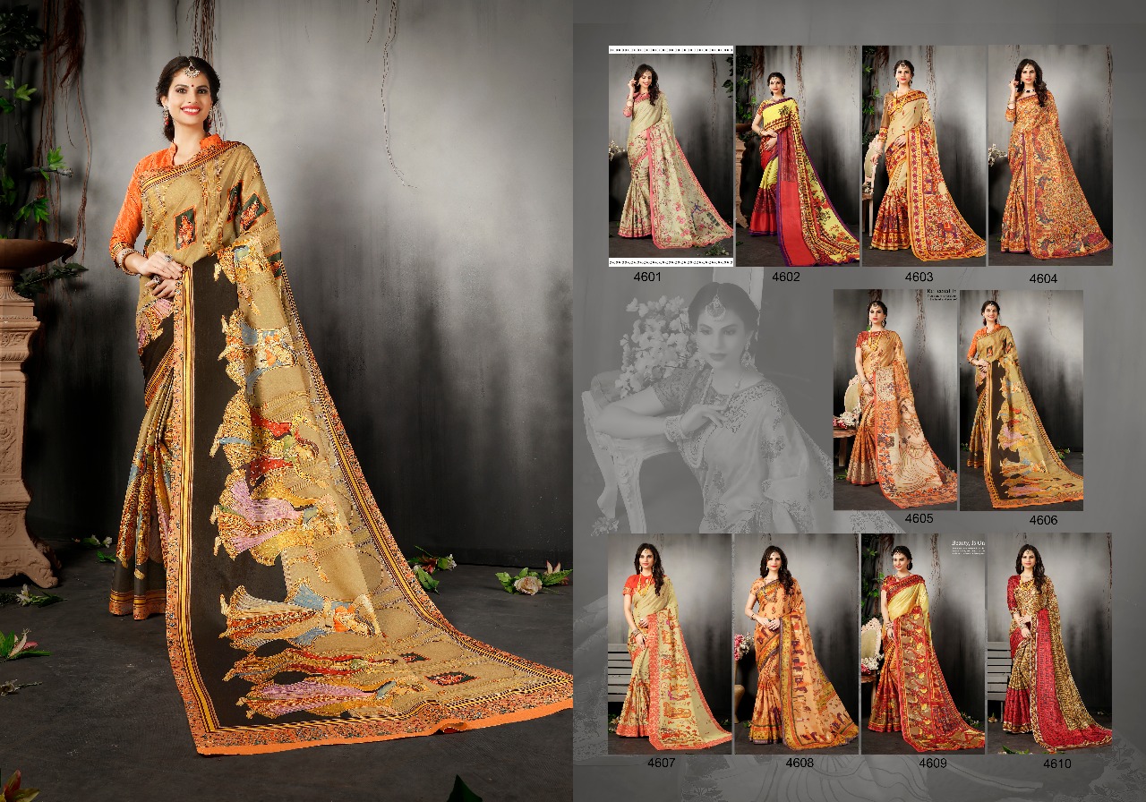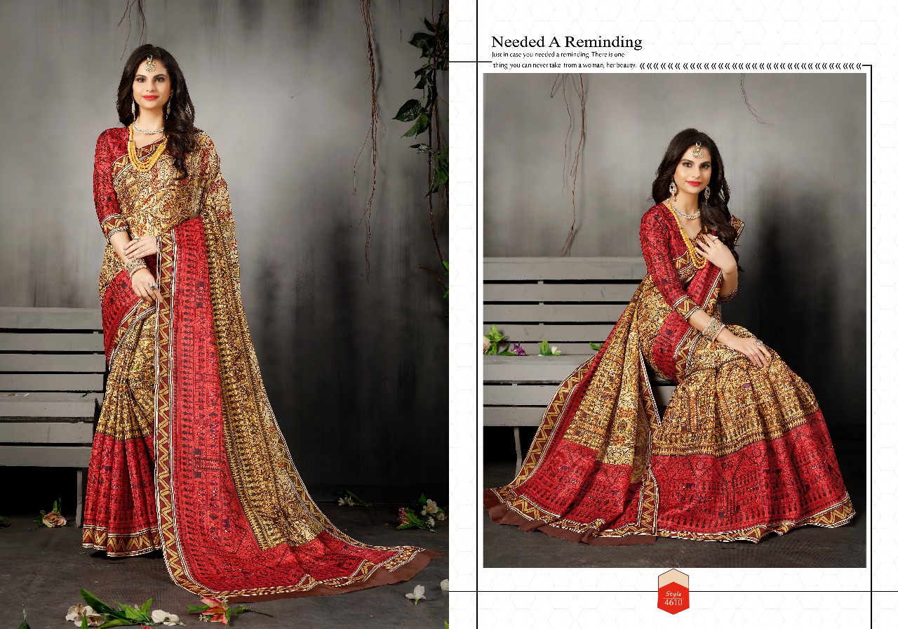 Buy Online Silk Villa Avantika Vol 2 4601 Series Fancy Silk Print Saree 10 Pcs of Full Catalogue at Wholesale Price. Looking for Silk Villa Avantika Vol 2 4601 Series Fancy Silk Print Saree Full Catalouge at Best Price? Buy Now Silk Villa Avantika Vol 2 4601 Series Fancy Silk Print Saree at Wholesale Rate of Rs 10500 with Total 10 Pcs from authroized dealer and supplier of SILK VILLA Brand. Cost of Each piece is just only Rs 1050 which is very low and affordable price to resale the product in your retail store ,This is Surat based Wholesale Supplier & Dealer of SILK VILLA Brand. Click on Brand name to Know more about SILK VILLA Brand's products.Call or Whatsapp on 9898838984 for booking or enquiry