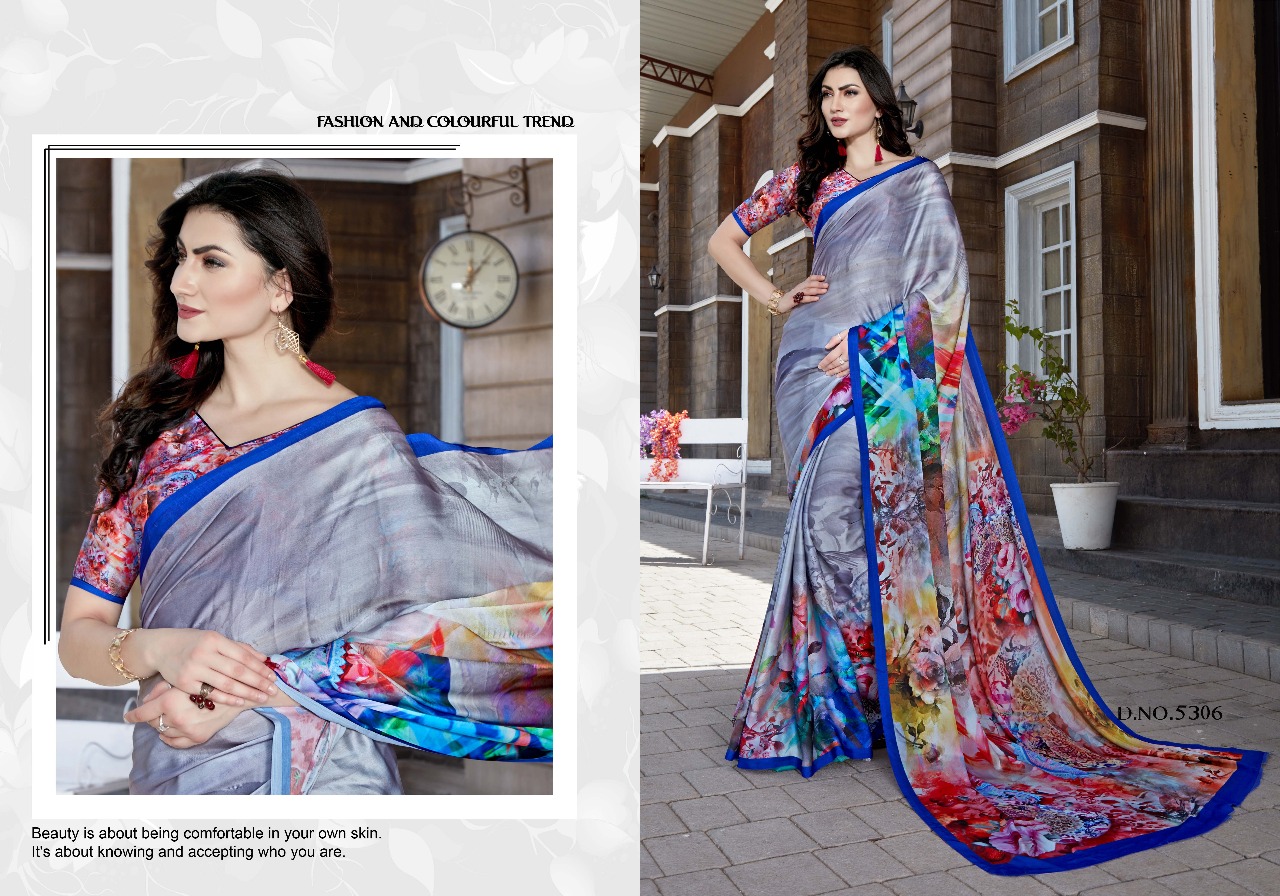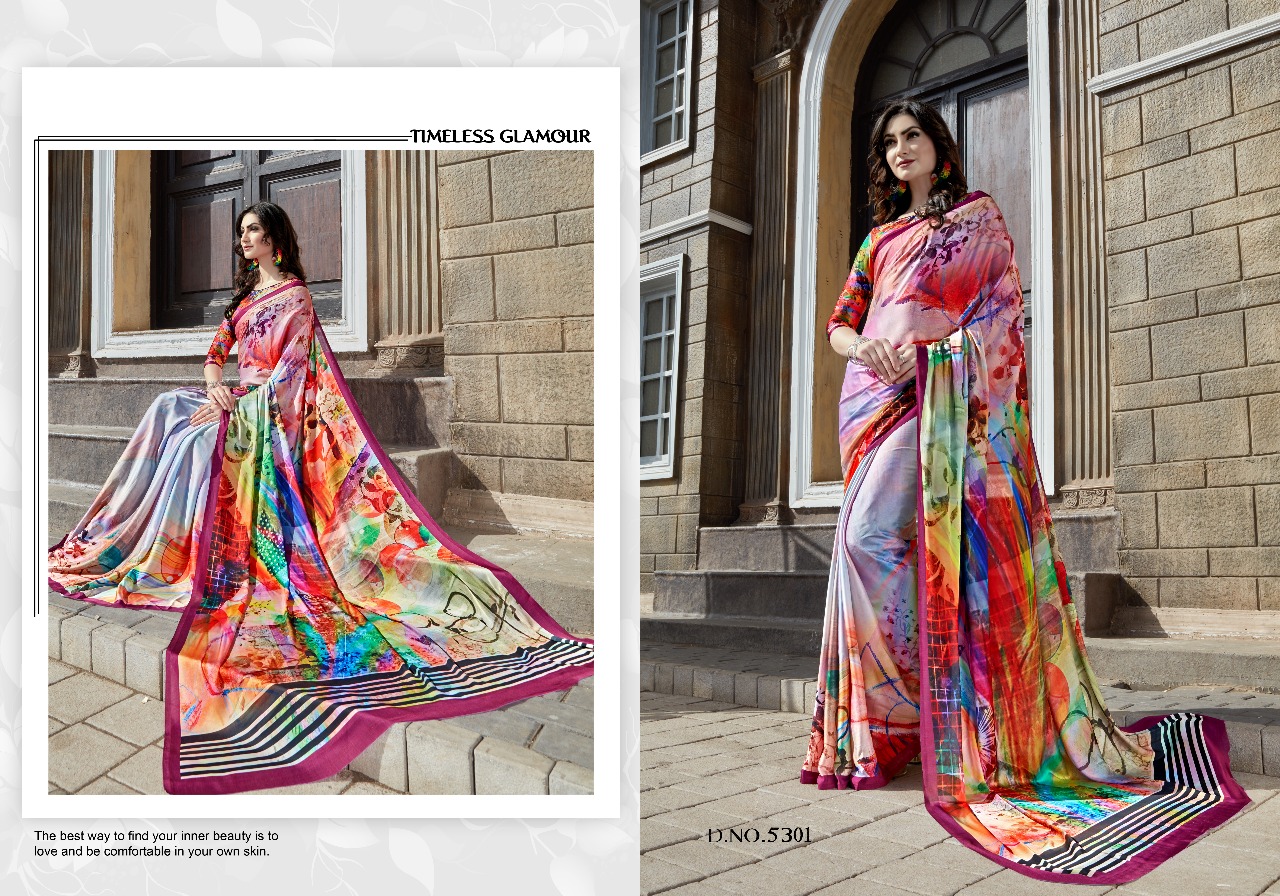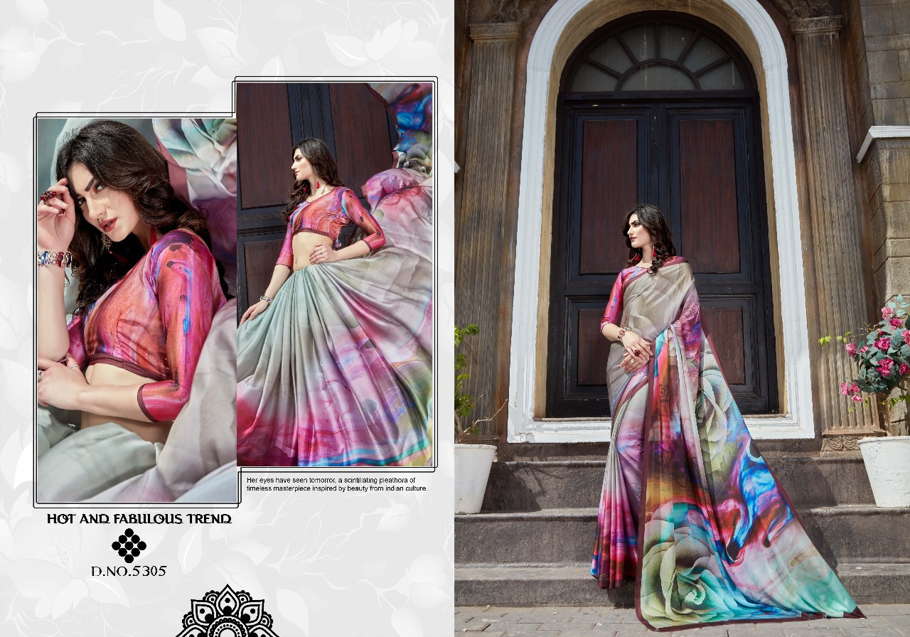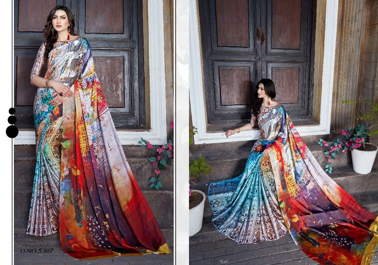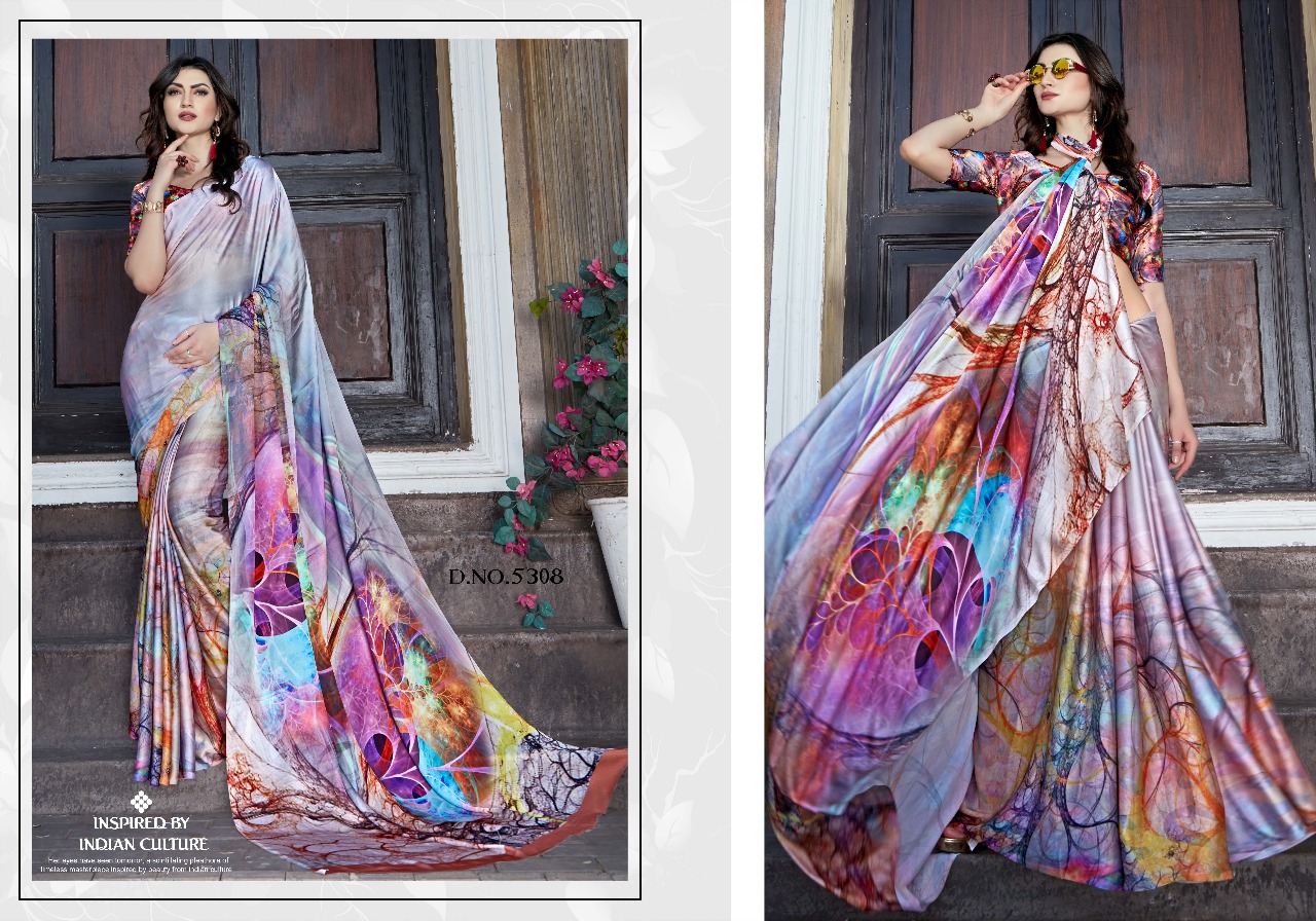 Silk Villa Paris Silk 5301 Series Satin Crepe Digital Saree