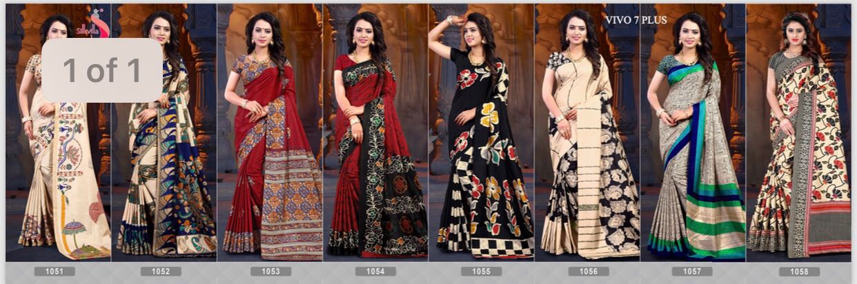 Buy Online Silk Villa Vivo 7 Plus 1051 Series Fancy Manipuri Silk Saree 8 Pcs of Full Catalogue at Wholesale Price. Looking for Silk Villa Vivo 7 Plus 1051 Series Fancy Manipuri Silk Saree Full Catalouge at Best Price? Buy Now Silk Villa Vivo 7 Plus 1051 Series Fancy Manipuri Silk Saree at Wholesale Rate of Rs 3800 with Total 8 Pcs from authroized dealer and supplier of SILK VILLA Brand. Cost of Each piece is just only Rs 475 which is very low and affordable price to resale the product in your retail store ,This is Surat based Wholesale Supplier & Dealer of SILK VILLA Brand. Click on Brand name to Know more about SILK VILLA Brand's products.Call or Whatsapp on 9898838984 for booking or enquiry