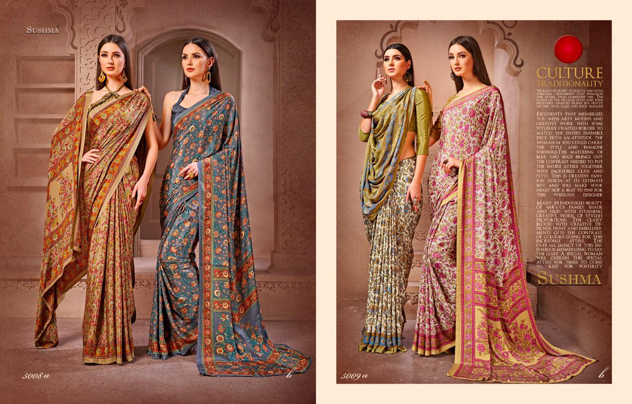 Silken By Sushama Series 5001a Crape Printed Sarees Wholesale Supplier And Dealer Gujarat