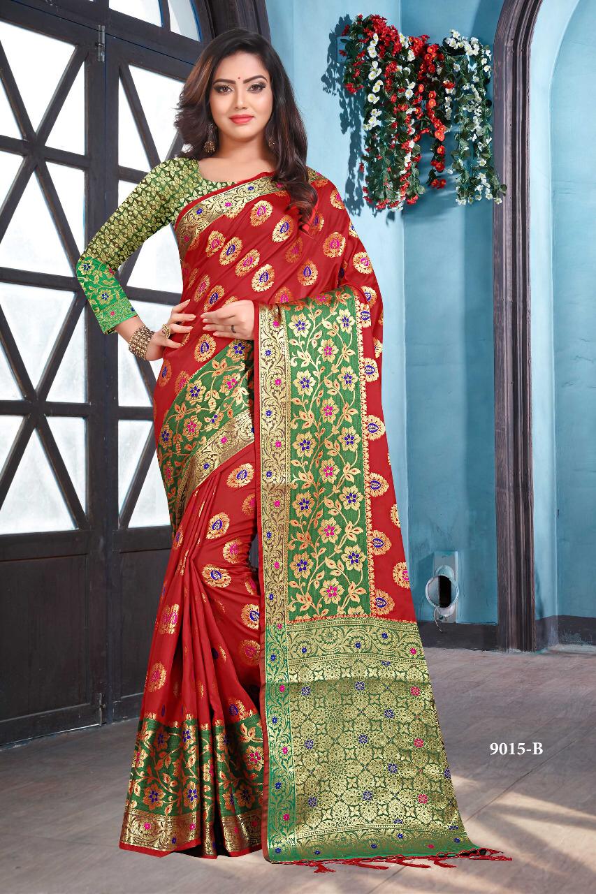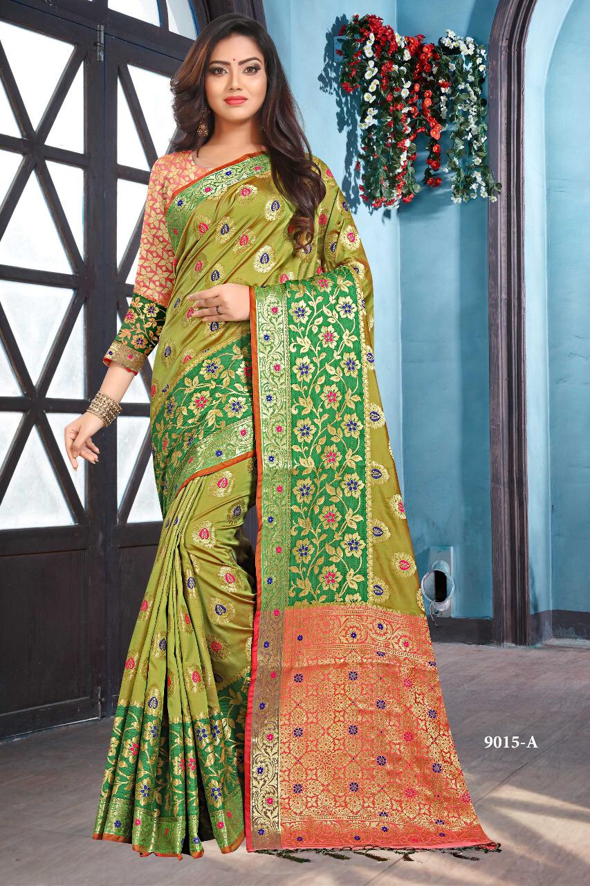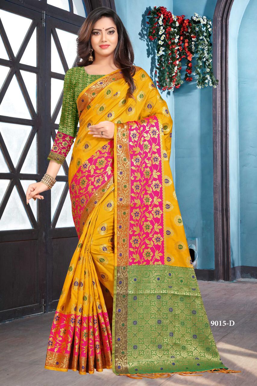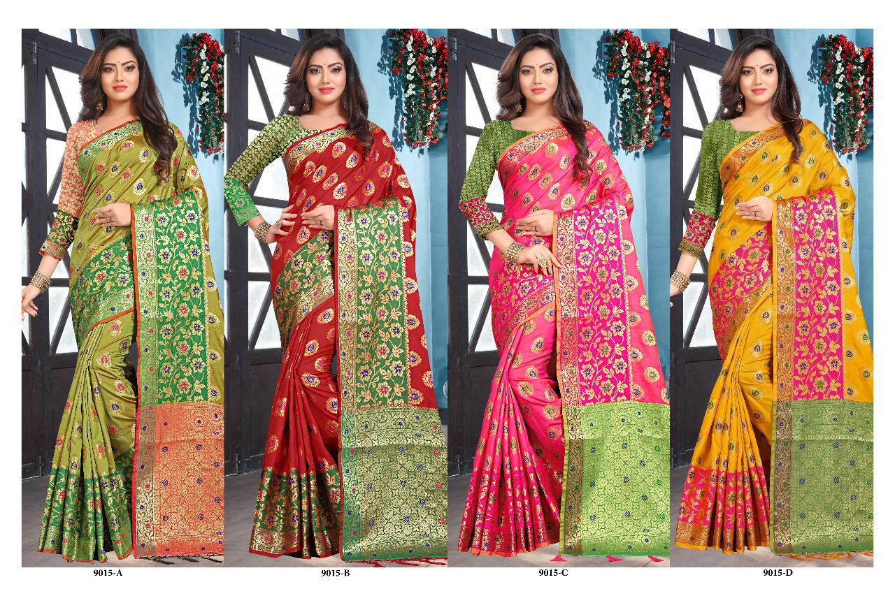 *NP New * Now we present ...... Brand - *SILKSHOW* CATLOGUE - 9015 With Color Rate= 1225/- Single 1325/- Fabric Details -.Soft silk Grand Pallu and Border Blouse - Jeq. Blouse Book fast Full set ready Single also ?? We always trust in quality? Delivery from today |