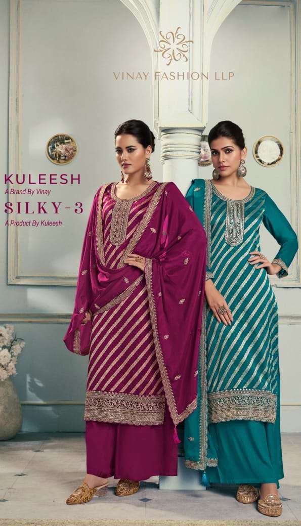 SILKY 3 LIGHT DARK by vinay fashion JACQUARD silk suit collection manufacturer surat