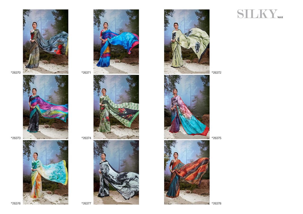 Buy Online Silky Vol 6 By Bela Satin Georgette Sarees Wholesale Supplier Gujarat 9 Pcs of Full Catalogue at Wholesale Price. Looking for Silky Vol 6 By Bela Satin Georgette Sarees Wholesale Supplier Gujarat Full Catalouge at Best Price? Buy Now Silky Vol 6 By Bela Satin Georgette Sarees Wholesale Supplier Gujarat at Wholesale Rate of Rs 10125 with Total 9 Pcs from authroized dealer and supplier of BELA Brand. Cost of Each piece is just only Rs 1125 which is very low and affordable price to resale the product in your retail store ,This is Surat based Wholesale Supplier & Dealer of BELA Brand. Click on Brand name to Know more about BELA Brand's products.Call or Whatsapp on 9898838984 for booking or enquiry