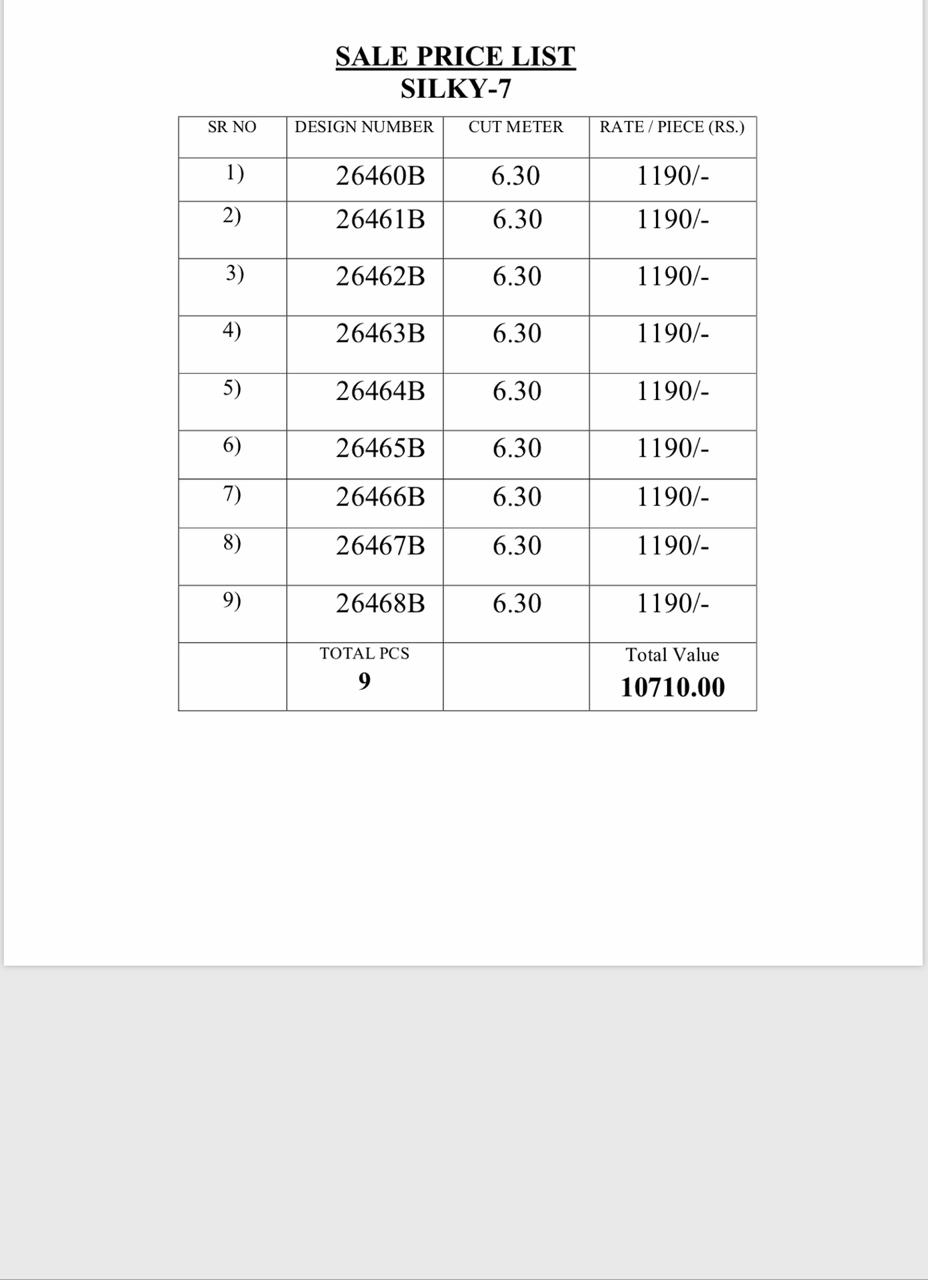Buy Online Silky Vol 7 By Bela Satin Georgette Sarees Wholesale Supplier India 9 Pcs of Full Catalogue at Wholesale Price. Looking for Silky Vol 7 By Bela Satin Georgette Sarees Wholesale Supplier India Full Catalouge at Best Price? Buy Now Silky Vol 7 By Bela Satin Georgette Sarees Wholesale Supplier India at Wholesale Rate of Rs 10710 with Total 9 Pcs from authroized dealer and supplier of BELA Brand. Cost of Each piece is just only Rs 1190 which is very low and affordable price to resale the product in your retail store ,This is Surat based Wholesale Supplier & Dealer of BELA Brand. Click on Brand name to Know more about BELA Brand's products.Call or Whatsapp on 9898838984 for booking or enquiry