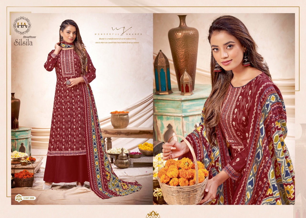 Buy Online Silsila By Harshit Fashion Hub By Alok Suit Wholesale Supplier Traders In Surat 10 Pcs of Full Catalogue at Wholesale Price. Looking for Silsila By Harshit Fashion Hub By Alok Suit Wholesale Supplier Traders In Surat Full Catalouge at Best Price? Buy Now Silsila By Harshit Fashion Hub By Alok Suit Wholesale Supplier Traders In Surat at Wholesale Rate of Rs 4410 with Total 10 Pcs from authroized dealer and supplier of Brand. Cost of Each piece is just only Rs 441 which is very low and affordable price to resale the product in your retail store ,This is Surat based Wholesale Supplier & Dealer of Brand. Click on Brand name to Know more about Brand's products.Call or Whatsapp on 9898838984 for booking or enquiry