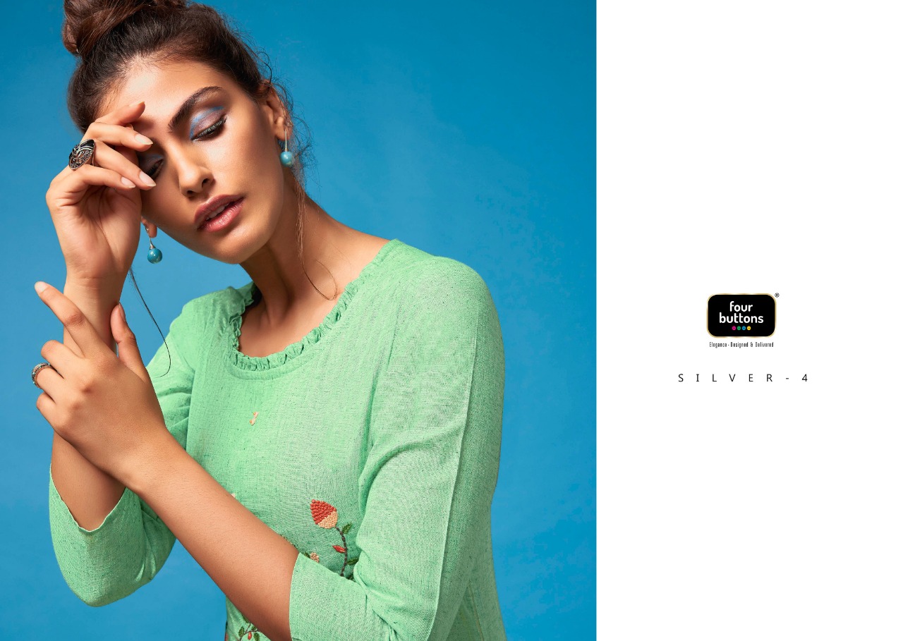 Buy Online Silver 4 By Four Buttons Designer Kurtis With Pant Wholesale Supplier Nd Dealer Gujarat 6 Pcs of Full Catalogue at Wholesale Price. Looking for Silver 4 By Four Buttons Designer Kurtis With Pant Wholesale Supplier Nd Dealer Gujarat Full Catalouge at Best Price? Buy Now Silver 4 By Four Buttons Designer Kurtis With Pant Wholesale Supplier Nd Dealer Gujarat at Wholesale Rate of Rs 5970 with Total 6 Pcs from authroized dealer and supplier of FOUR BUTTONS Brand. Cost of Each piece is just only Rs 995 which is very low and affordable price to resale the product in your retail store ,This is Surat based Wholesale Supplier & Dealer of FOUR BUTTONS Brand. Click on Brand name to Know more about FOUR BUTTONS Brand's products.Call or Whatsapp on 9898838984 for booking or enquiry