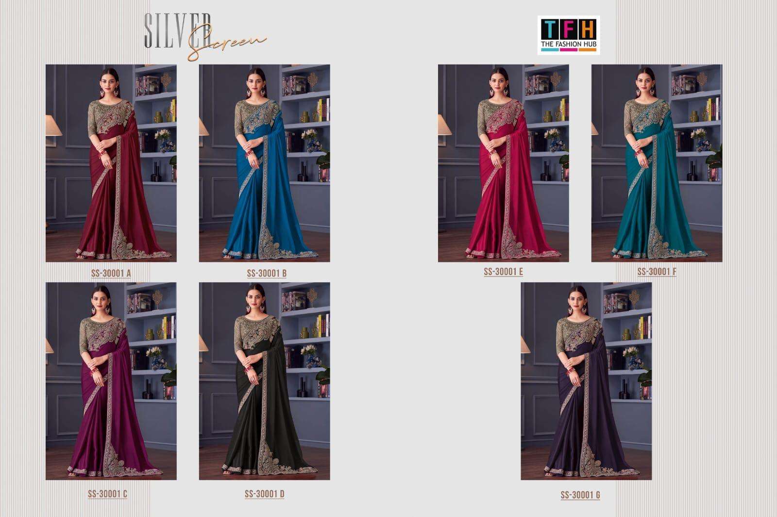 Silver Screen 20 3000 Series 30001A to 30001G by TFH satin silk saree collection manufacturer surat