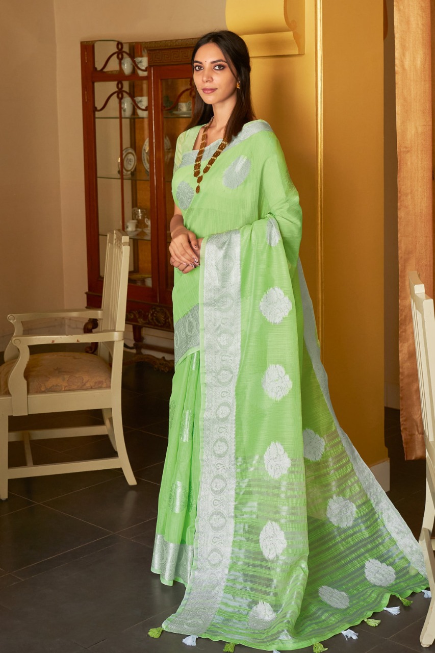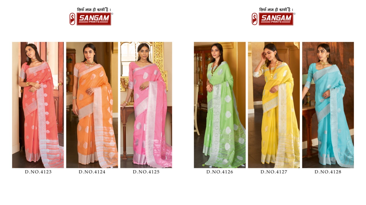 Brand - Sangam . ?LAUNCHING? ?NEW CATALOG? CATALOG :- SILVER SCREEN FABRIC: Linen RATE: 960 + GST SAREE SIZE: 5.50 Mtr BLOUSE FABRIC: 0.80 Mtr TOTAL PCS: 6 AVAILABLE :- SINGLE PCS AND FULL SET BOTH ARE Available Set @ loose @ Singel WITH BLOUSE PIECE ATTACHED ?BOOK YOUR ORDERS NOW? 100+single |
