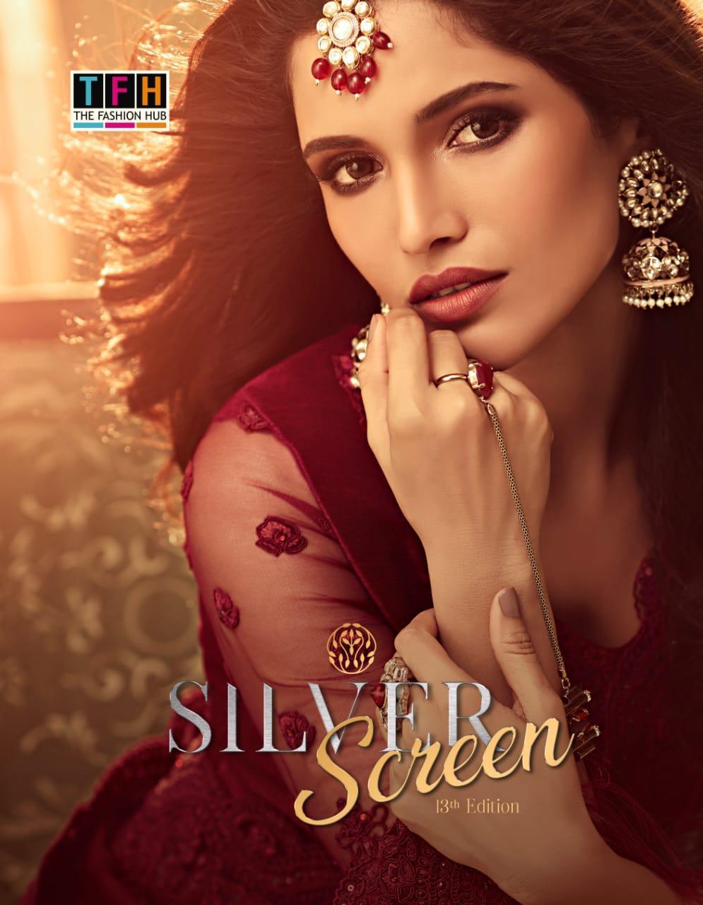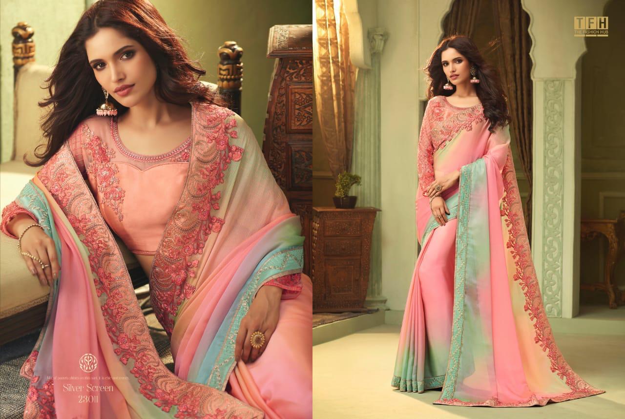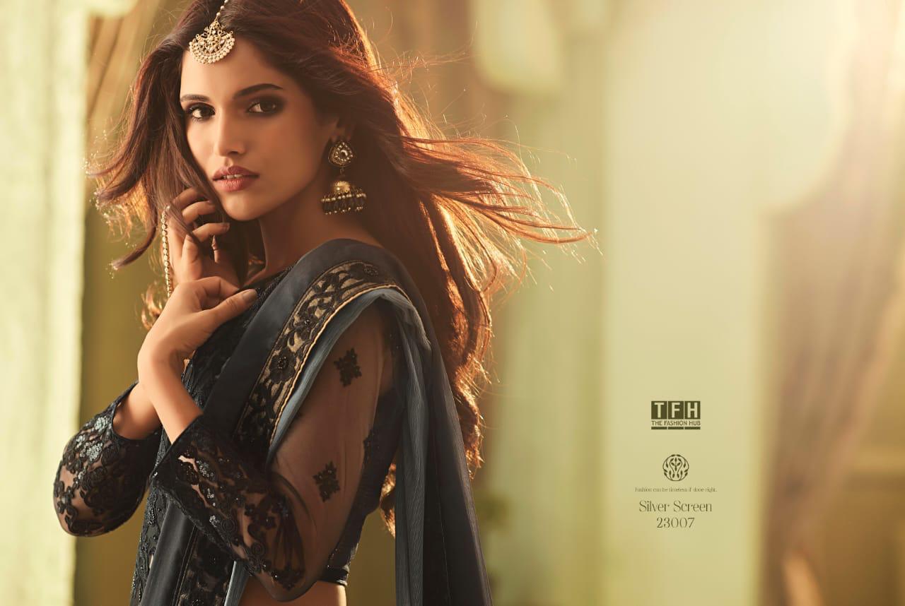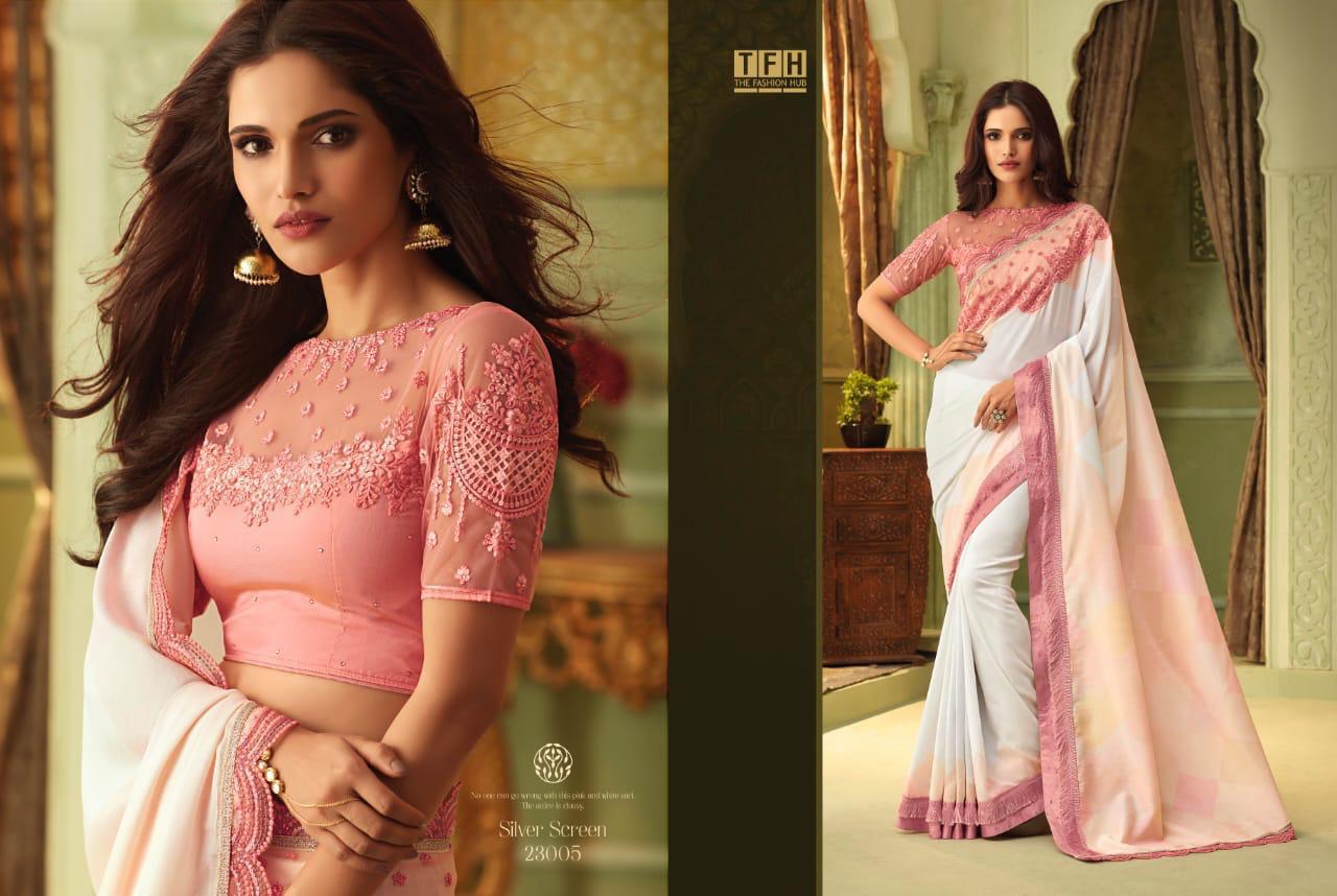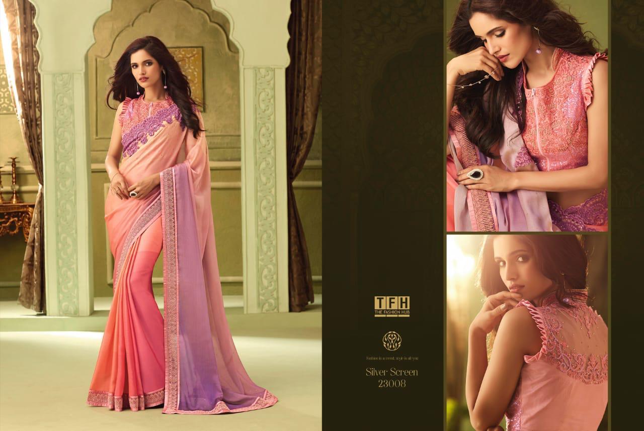 Silver Screen Issue 13 By Tfh Series 23001 To 23018 Fancy Party Wear Sarees Wholesale Supplier Gujarat