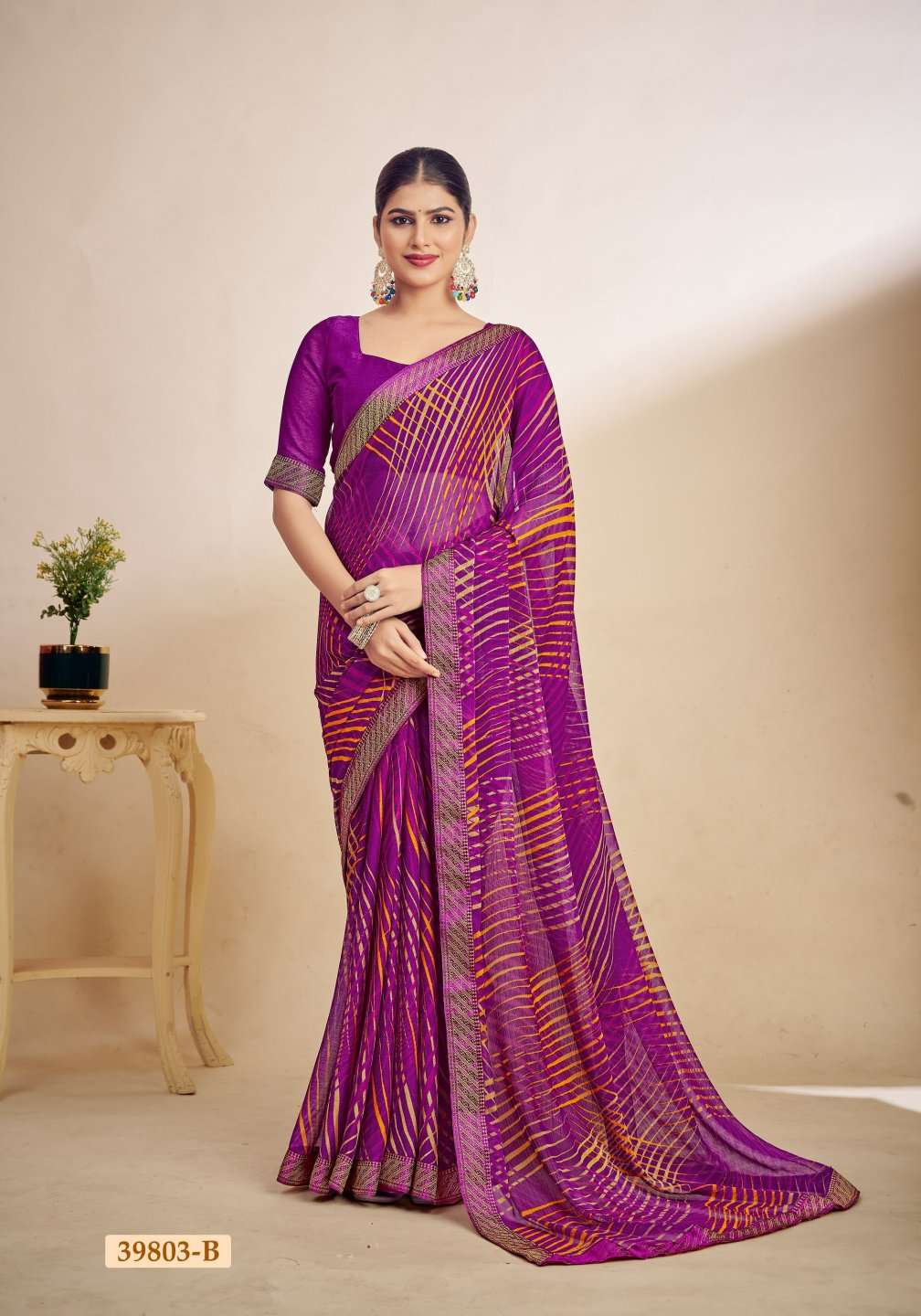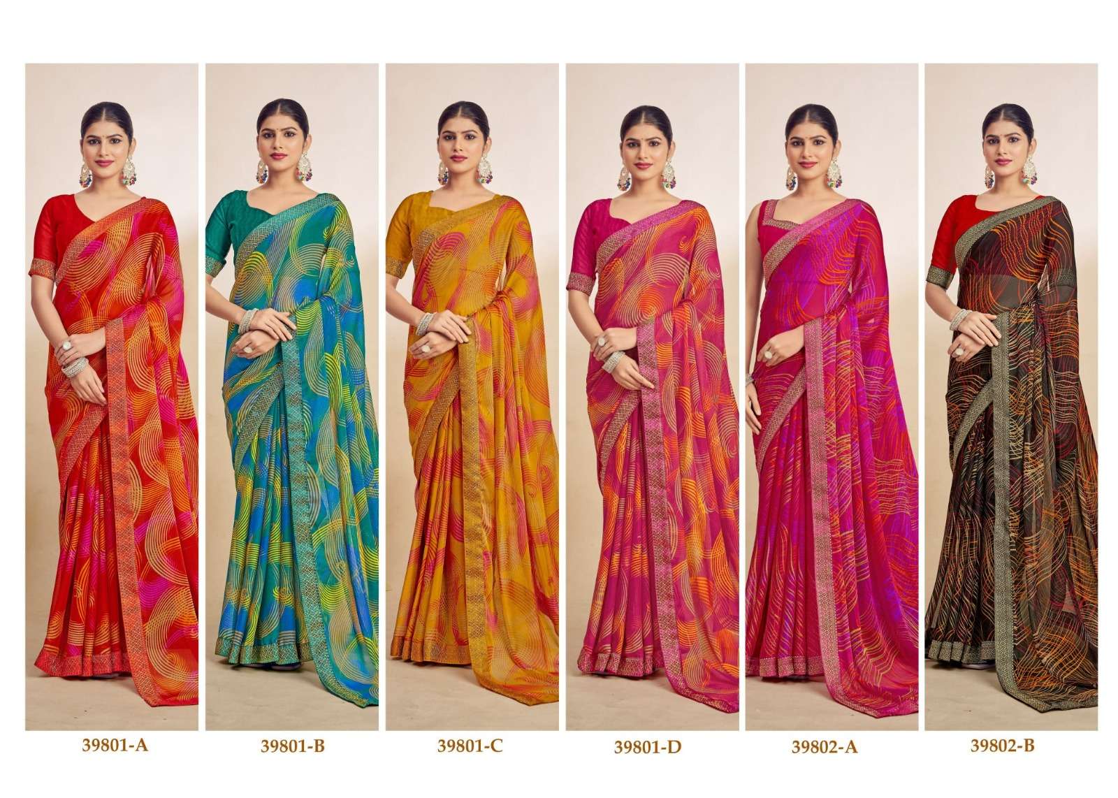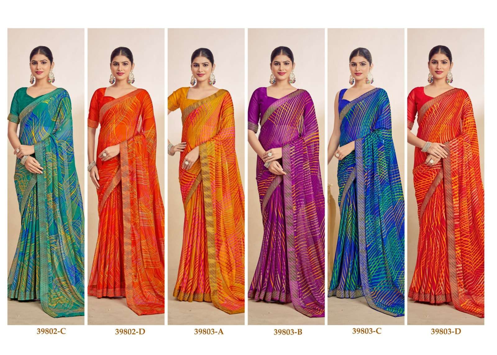 1. Folder - Simayaa vol -28 2. Pcs. - 12. 3. Fabric - Chiffon Saree with attached border. 4. Packing - Setwise & Designwise 5. rate. 528/-