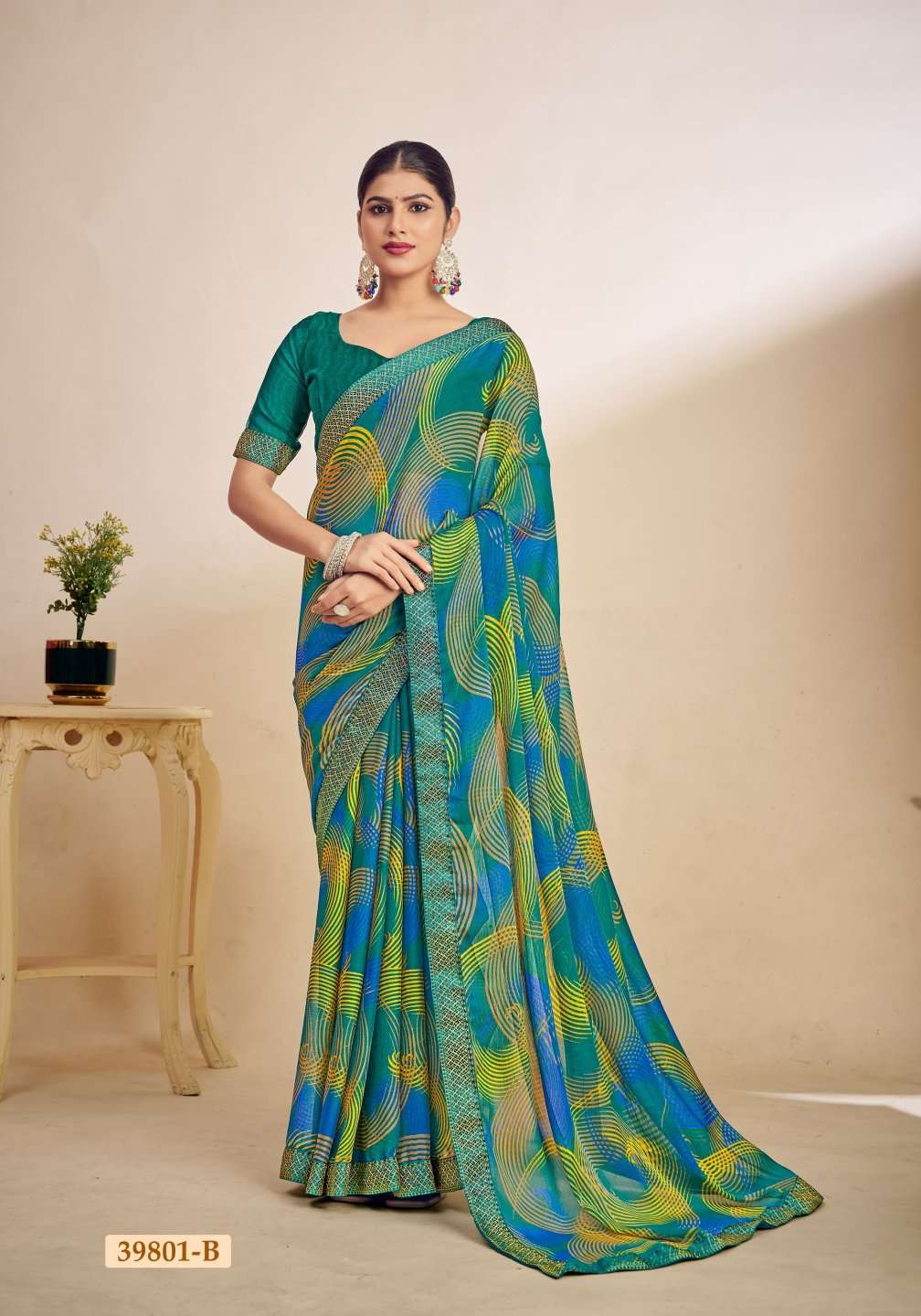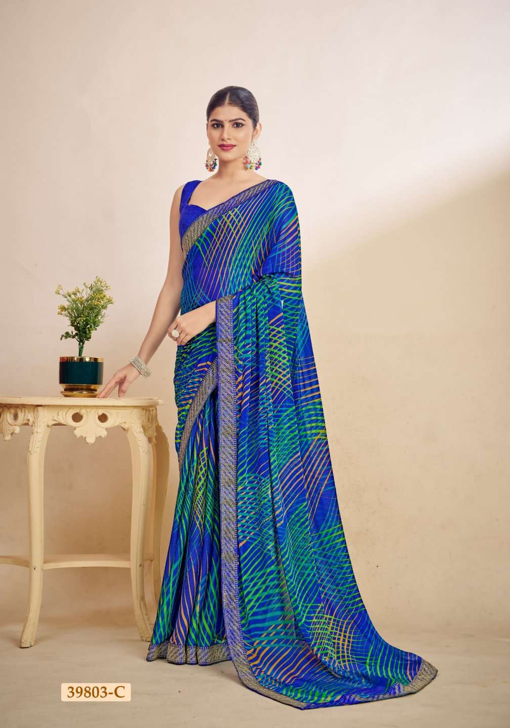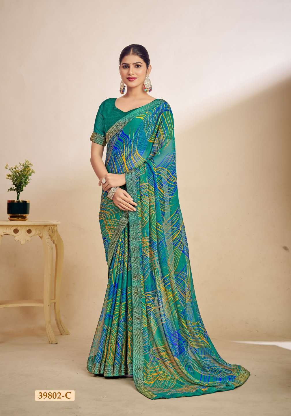 1. Folder - Simayaa vol -28 2. Pcs. - 12. 3. Fabric - Chiffon Saree with attached border. 4. Packing - Setwise & Designwise 5. rate. 528/-