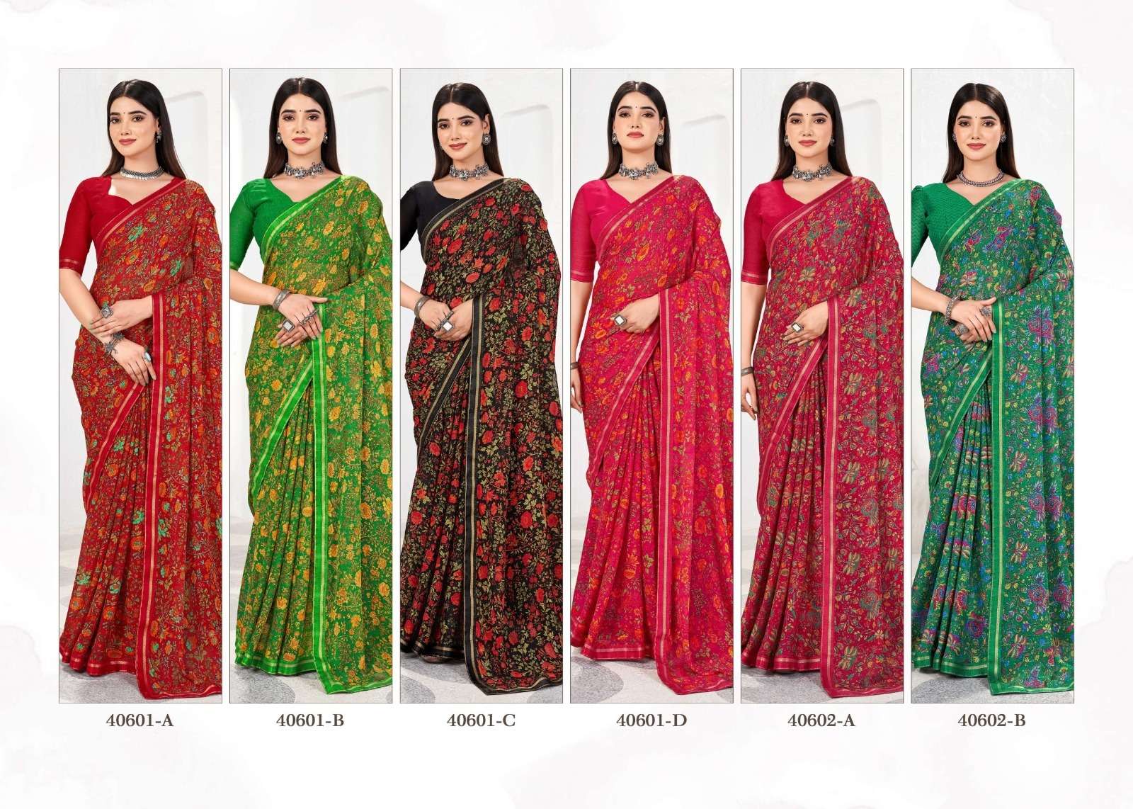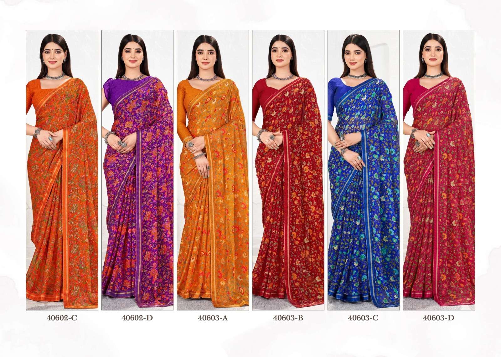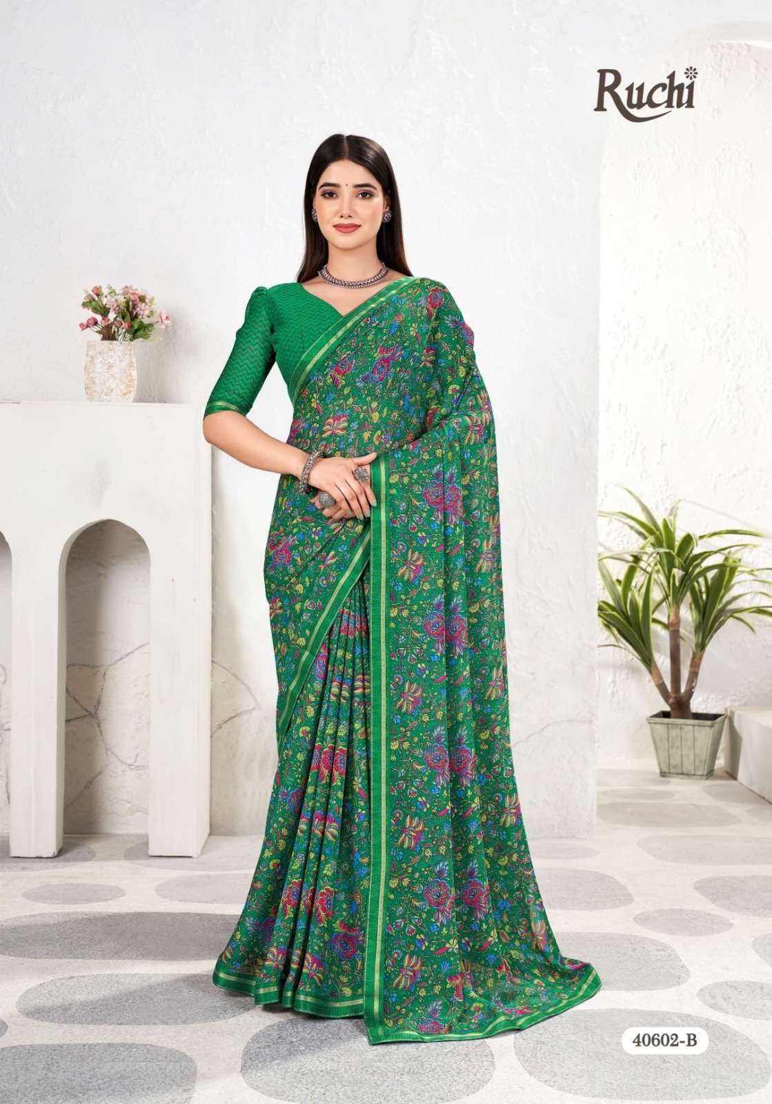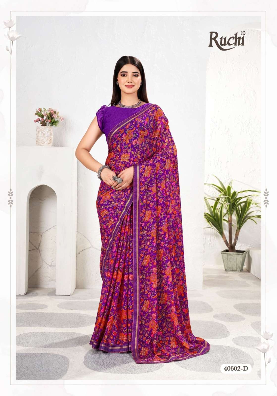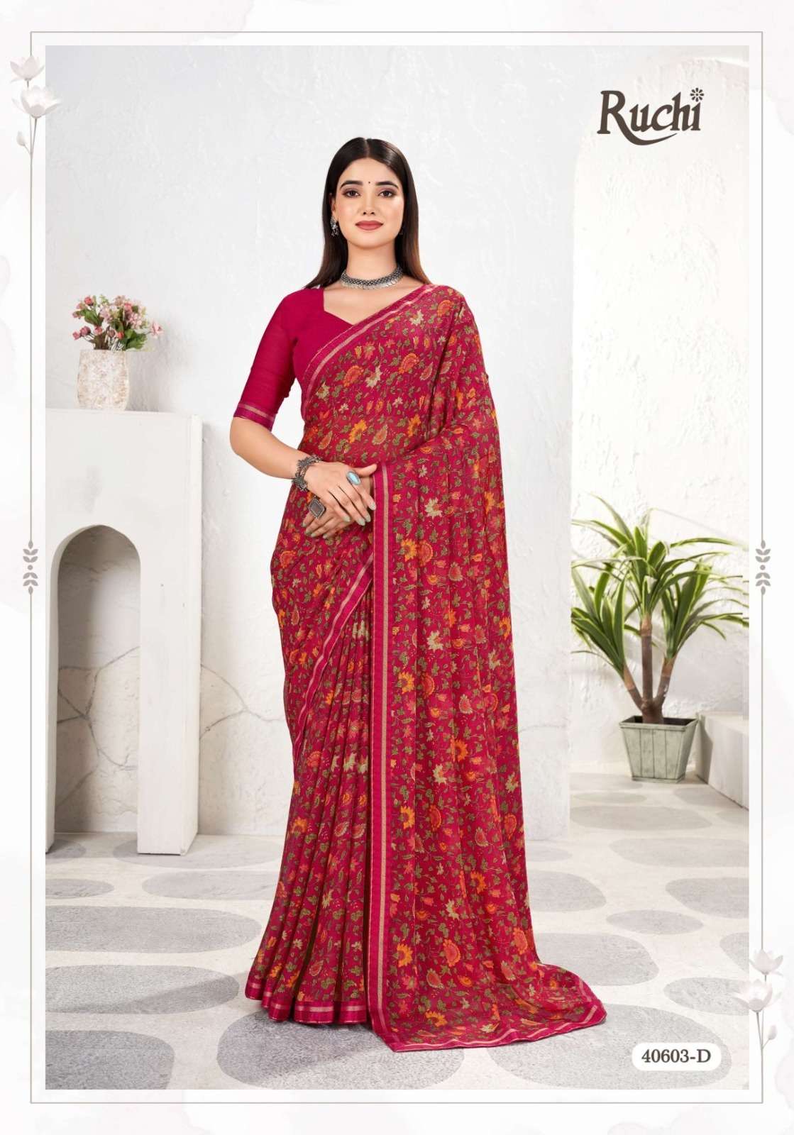 BRAND NAME – RUCHI CATALOG NAME – SIMAYAA VOL-31 SERIES – 40601A TO 40603D Pcs. - 12. Fabric - Chiffon Saree with attached border. RATE- 528 PER PCS GST EXTRA SINGLE AVAILABLE BOOK YOUR ORDER NOW |