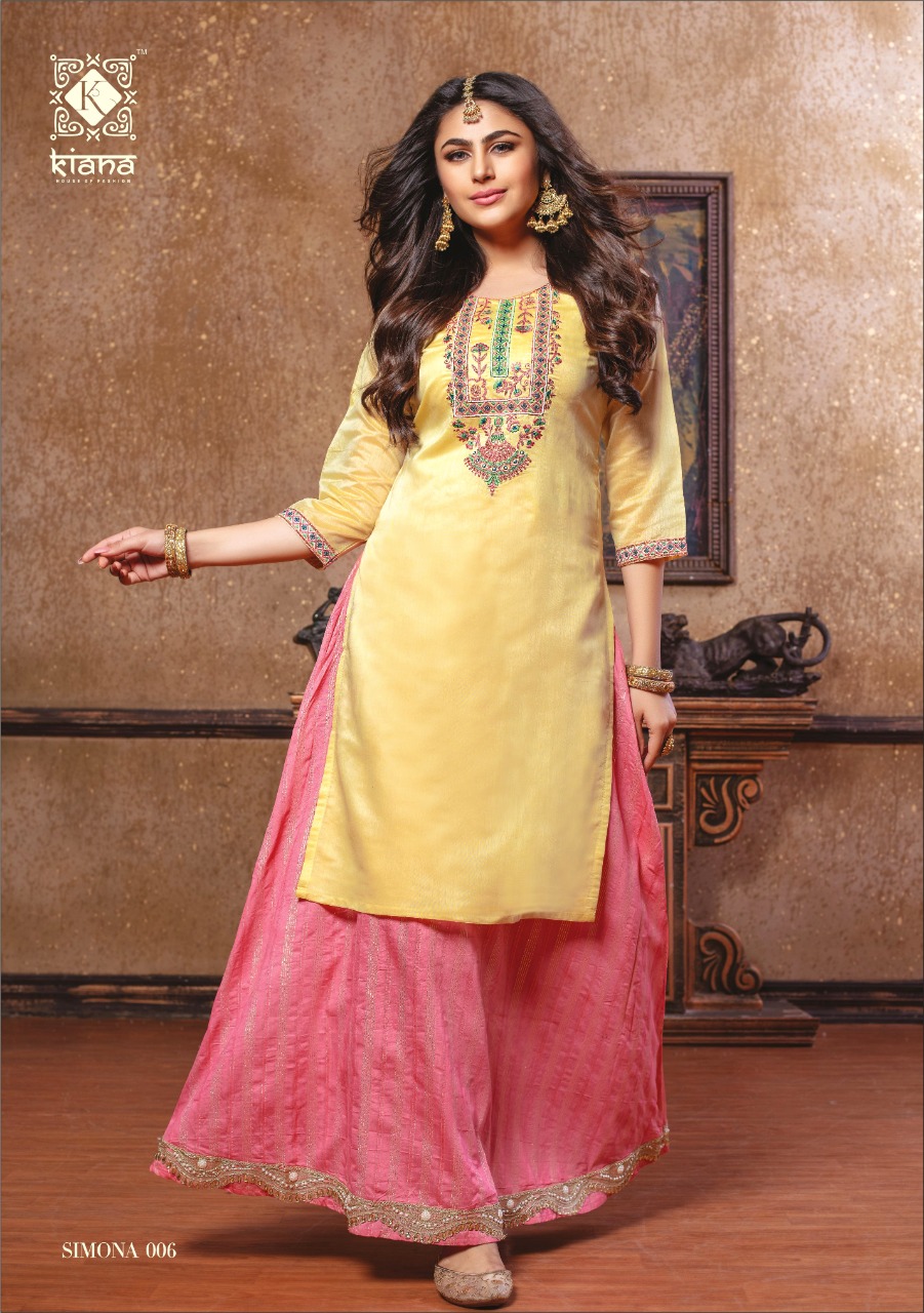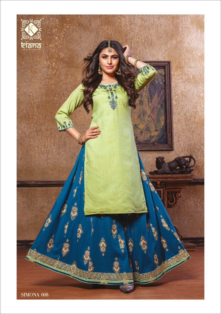 Buy Online Simona By Kiana Wholesale Dealer Single Pieces And Full Set Wholesale Supplier Dealer Surat 8 Pcs of Full Catalogue at Wholesale Price. Looking for Simona By Kiana Wholesale Dealer Single Pieces And Full Set Wholesale Supplier Dealer Surat Full Catalouge at Best Price? Buy Now Simona By Kiana Wholesale Dealer Single Pieces And Full Set Wholesale Supplier Dealer Surat at Wholesale Rate of Rs 8400 with Total 8 Pcs from authroized dealer and supplier of Kiana Brand. Cost of Each piece is just only Rs 1050 which is very low and affordable price to resale the product in your retail store ,This is Surat based Wholesale Supplier & Dealer of Kiana Brand. Click on Brand name to Know more about Kiana Brand's products.Call or Whatsapp on 9898838984 for booking or enquiry