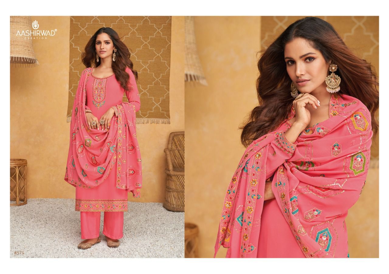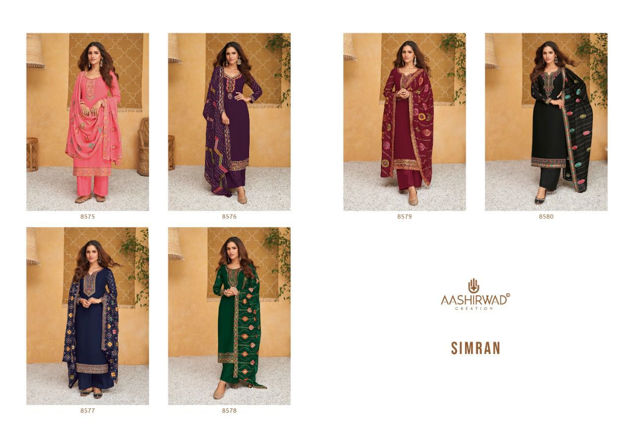 Buy Online Simran By Aashirwad Creation Wholesaler Supplier From Surat 6 Pcs of Full Catalogue at Wholesale Price. Looking for Simran By Aashirwad Creation Wholesaler Supplier From Surat Full Catalouge at Best Price? Buy Now Simran By Aashirwad Creation Wholesaler Supplier From Surat at Wholesale Rate of Rs 10170 with Total 6 Pcs from authroized dealer and supplier of AASHIRWAD Brand. Cost of Each piece is just only Rs 1695 which is very low and affordable price to resale the product in your retail store ,This is Surat based Wholesale Supplier & Dealer of AASHIRWAD Brand. Click on Brand name to Know more about AASHIRWAD Brand's products.Call or Whatsapp on 9898838984 for booking or enquiry