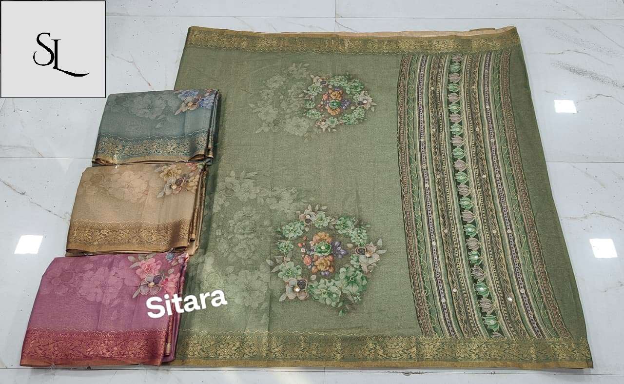 Buy Online Sitara 3 by SL saree Collection manufacturer surat 3 Pcs of Full Catalogue at Wholesale Price. Looking for Sitara 3 by SL saree Collection manufacturer surat Full Catalouge at Best Price? Buy Now Sitara 3 by SL saree Collection manufacturer surat at Wholesale Rate of Rs 3360 with Total 3 Pcs from authroized dealer and supplier of BRAND'S Brand. Cost of Each piece is just only Rs 1120 which is very low and affordable price to resale the product in your retail store ,This is Surat based Wholesale Supplier & Dealer of BRAND'S Brand. Click on Brand name to Know more about BRAND'S Brand's products.Call or Whatsapp on 9898838984 for booking or enquiry