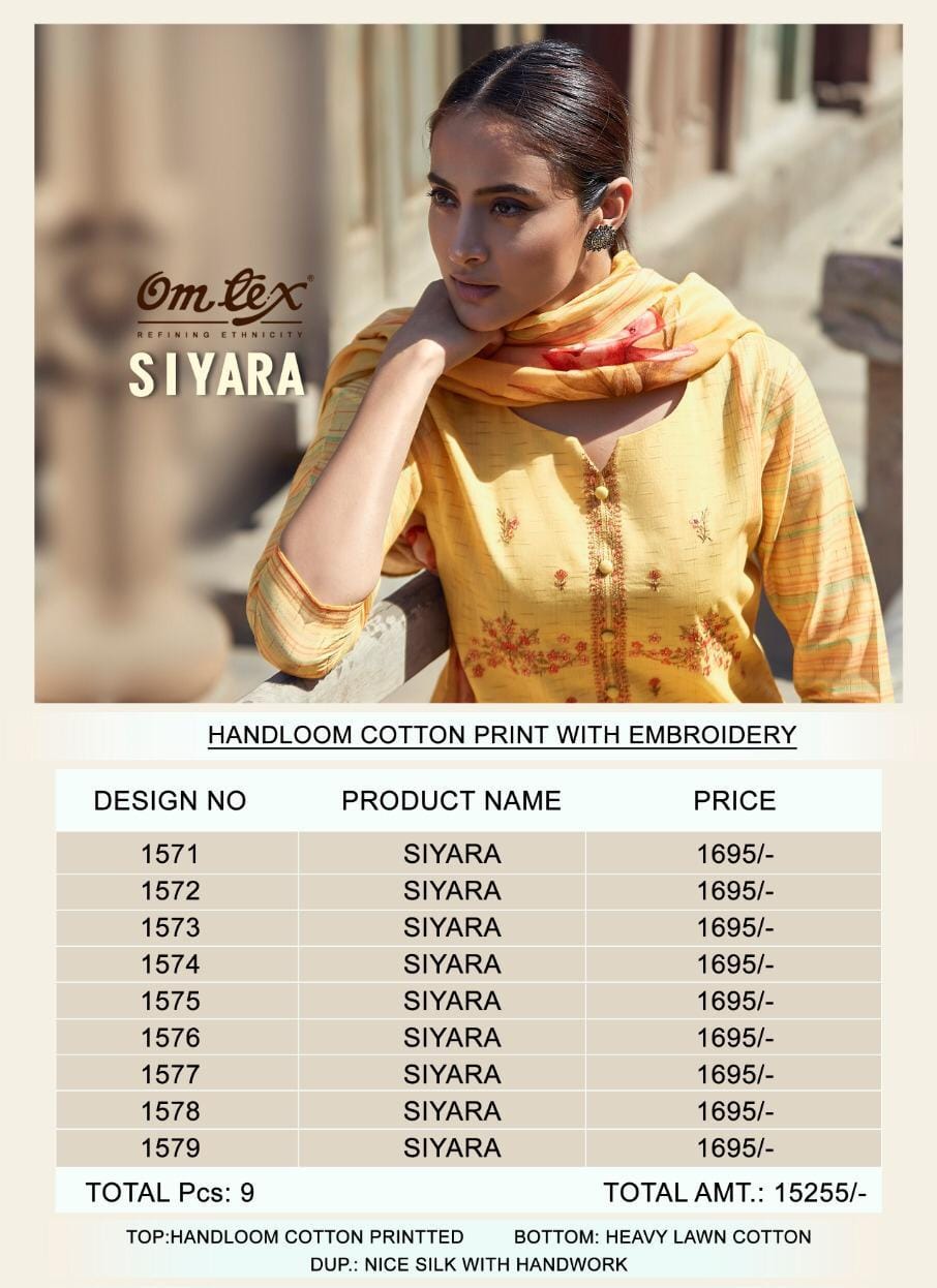 Buy Online Siyara By Omtex Manufacturer And Dealer From All Over India 9 Pcs of Full Catalogue at Wholesale Price. Looking for Siyara By Omtex Manufacturer And Dealer From All Over India Full Catalouge at Best Price? Buy Now Siyara By Omtex Manufacturer And Dealer From All Over India at Wholesale Rate of Rs 15255 with Total 9 Pcs from authroized dealer and supplier of OM TEX Brand. Cost of Each piece is just only Rs 1695 which is very low and affordable price to resale the product in your retail store ,This is Surat based Wholesale Supplier & Dealer of OM TEX Brand. Click on Brand name to Know more about OM TEX Brand's products.Call or Whatsapp on 9898838984 for booking or enquiry