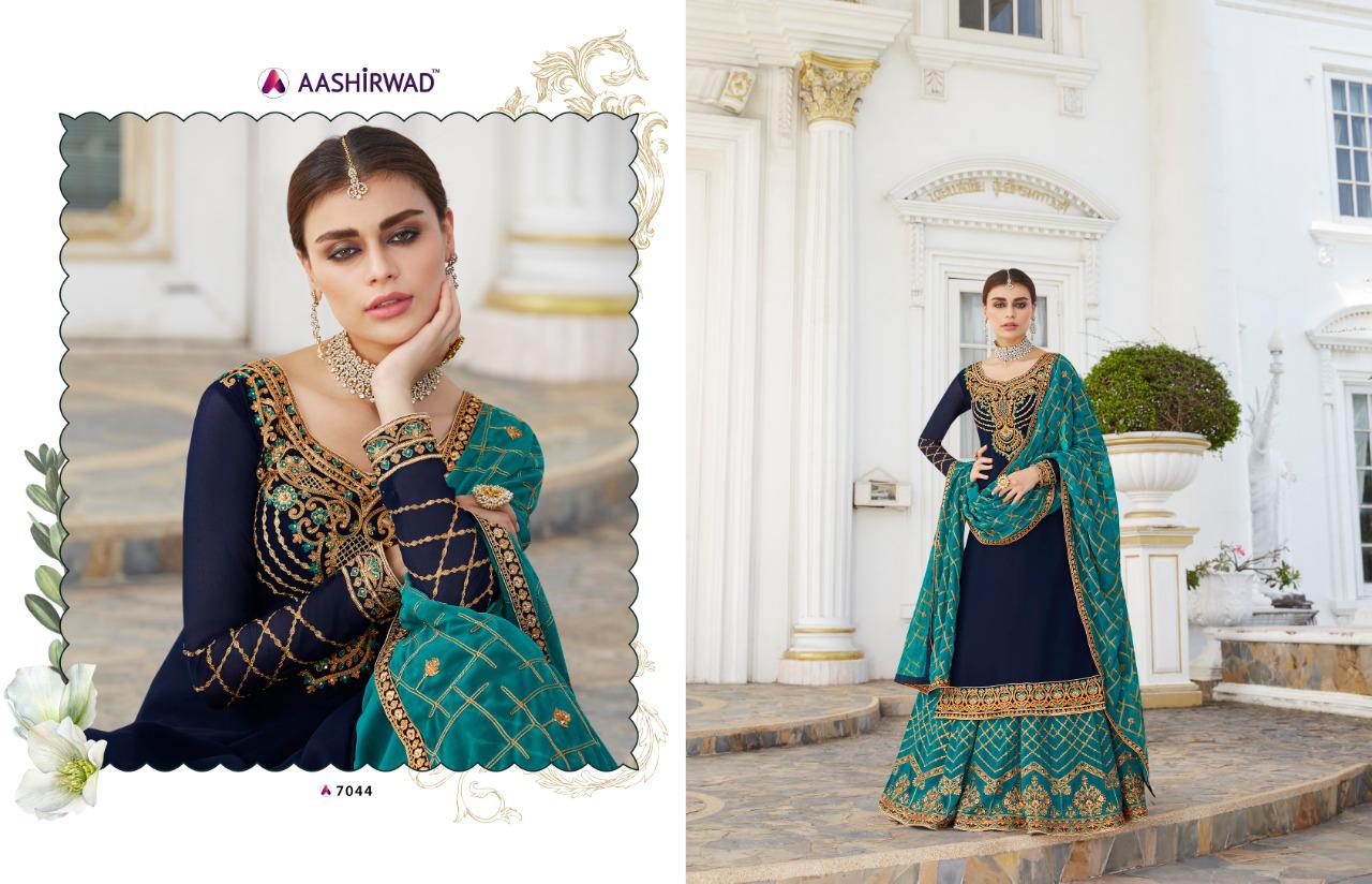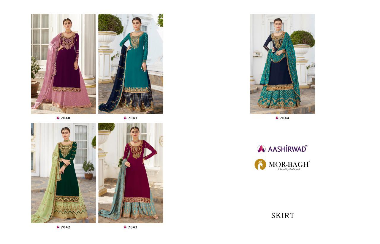 Buy Online Skirt By Ashirwad Series 7040 To 7044 Designer Party Wear Lehnga Suits Wholesale Supplier Gujarat 5 Pcs of Full Catalogue at Wholesale Price. Looking for Skirt By Ashirwad Series 7040 To 7044 Designer Party Wear Lehnga Suits Wholesale Supplier Gujarat Full Catalouge at Best Price? Buy Now Skirt By Ashirwad Series 7040 To 7044 Designer Party Wear Lehnga Suits Wholesale Supplier Gujarat at Wholesale Rate of Rs 13495 with Total 5 Pcs from authroized dealer and supplier of AASHIRWAD Brand. Cost of Each piece is just only Rs 2699 which is very low and affordable price to resale the product in your retail store ,This is Surat based Wholesale Supplier & Dealer of AASHIRWAD Brand. Click on Brand name to Know more about AASHIRWAD Brand's products.Call or Whatsapp on 9898838984 for booking or enquiry