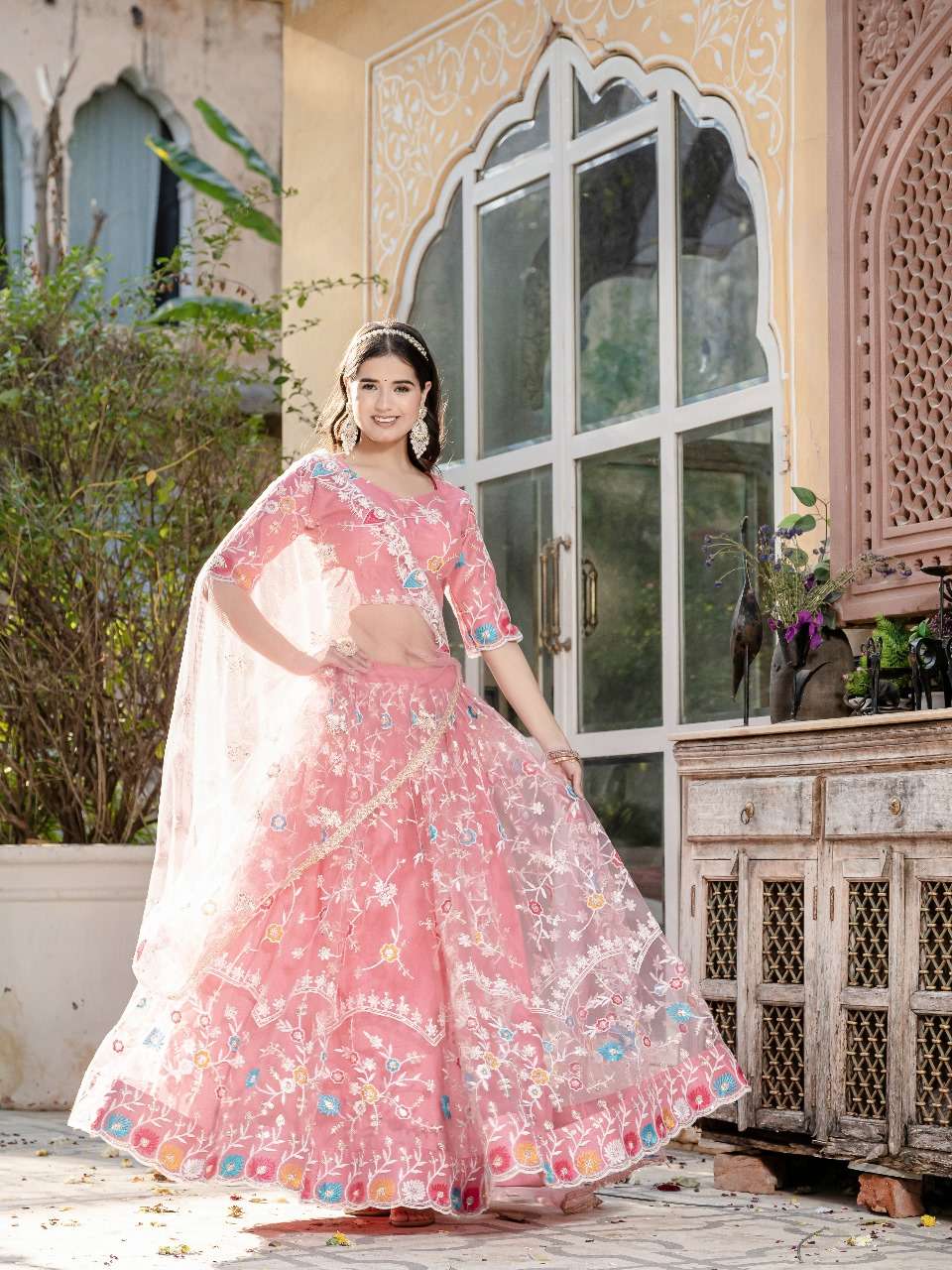 Pink : Net Embroidery Lehenga Choli For Special Occasions