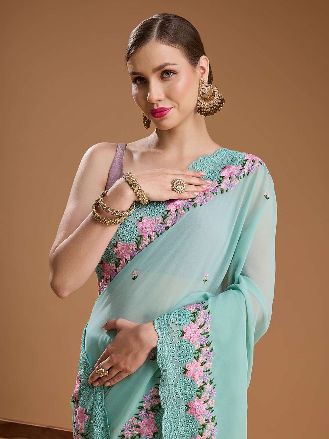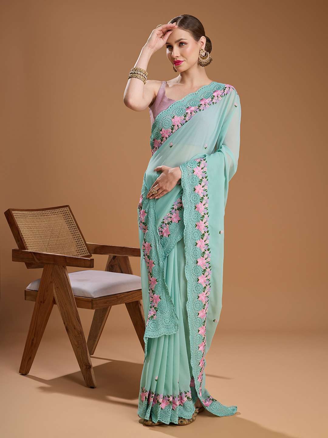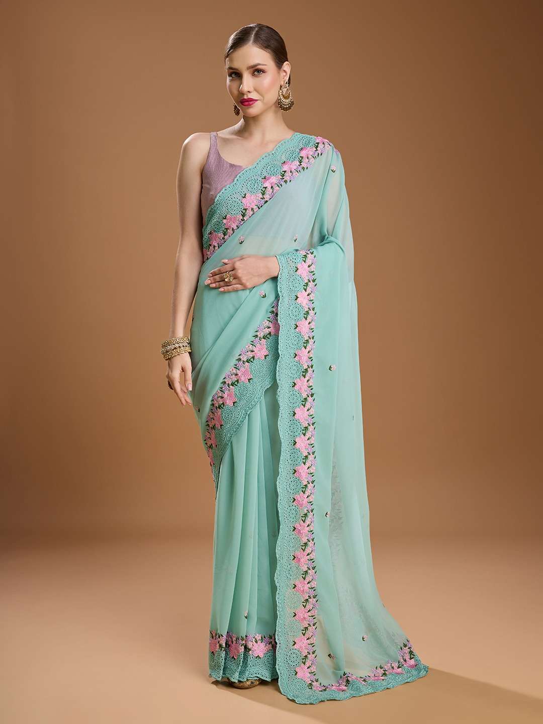 SKU P043 SAREE-Chiffon Satin BLOUSE-Chiffon Satin WORK-Embroidery Work PRICE-1450 |