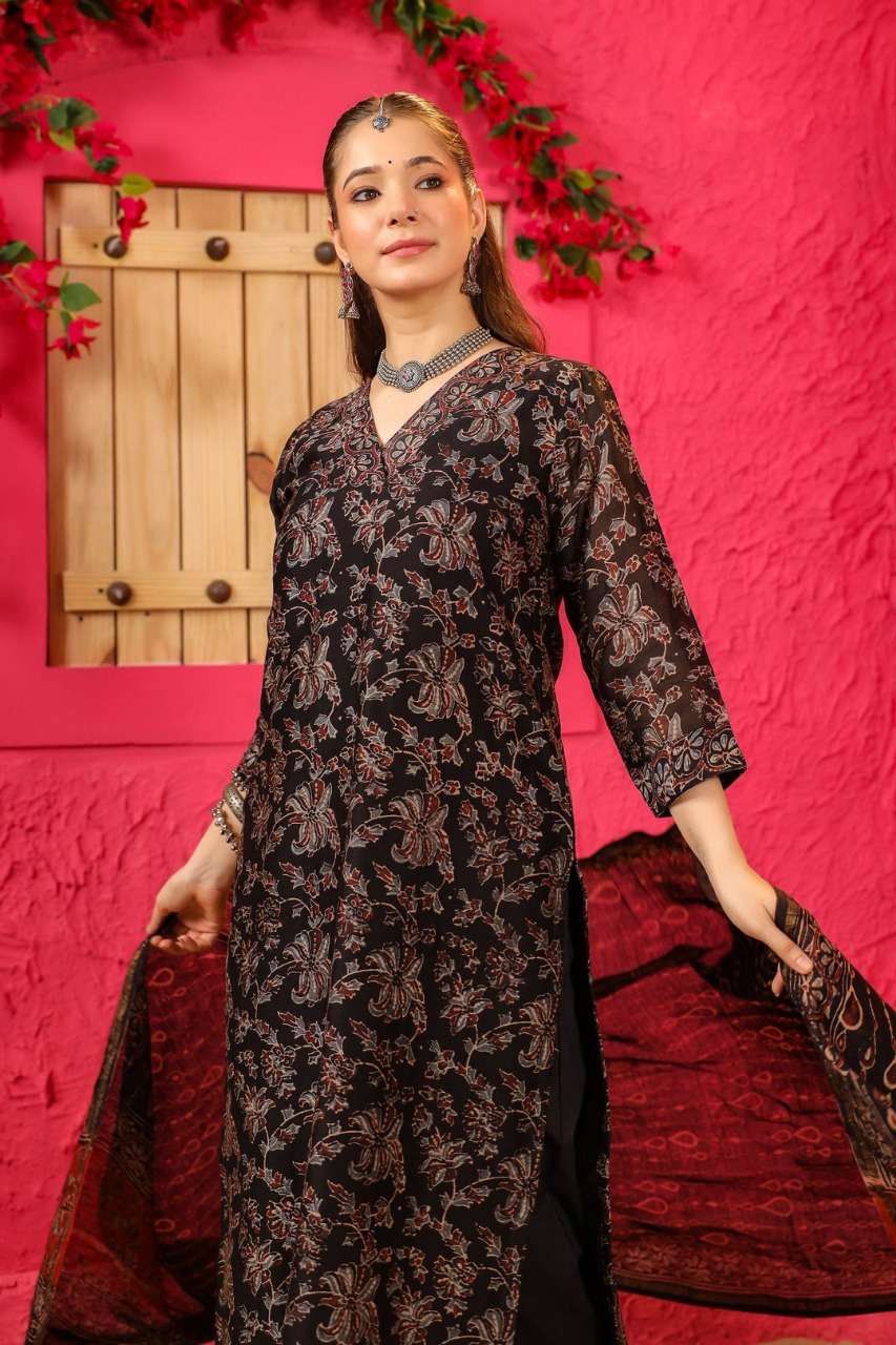 Product Details : ---------------------------------------- @ Kurti - Stitched @ @ Kurti Material: Roman Slub Black Flower Print @ Kurti Length: 45 Inch @ Kurti Bust Size : Max Up To 44" ---------------------------------------- @ Bottom - PANT @ Bottom Fabric : Roman Slub @ Bottom Waist Size : Max up to 38" @ Bottom Length : 37" to 38" ---------------------------------------- @ Dupatta -Stitched @ @ Dupatta Fabric : Kota Chex Printed @ Dupatta Length : 2.20 m