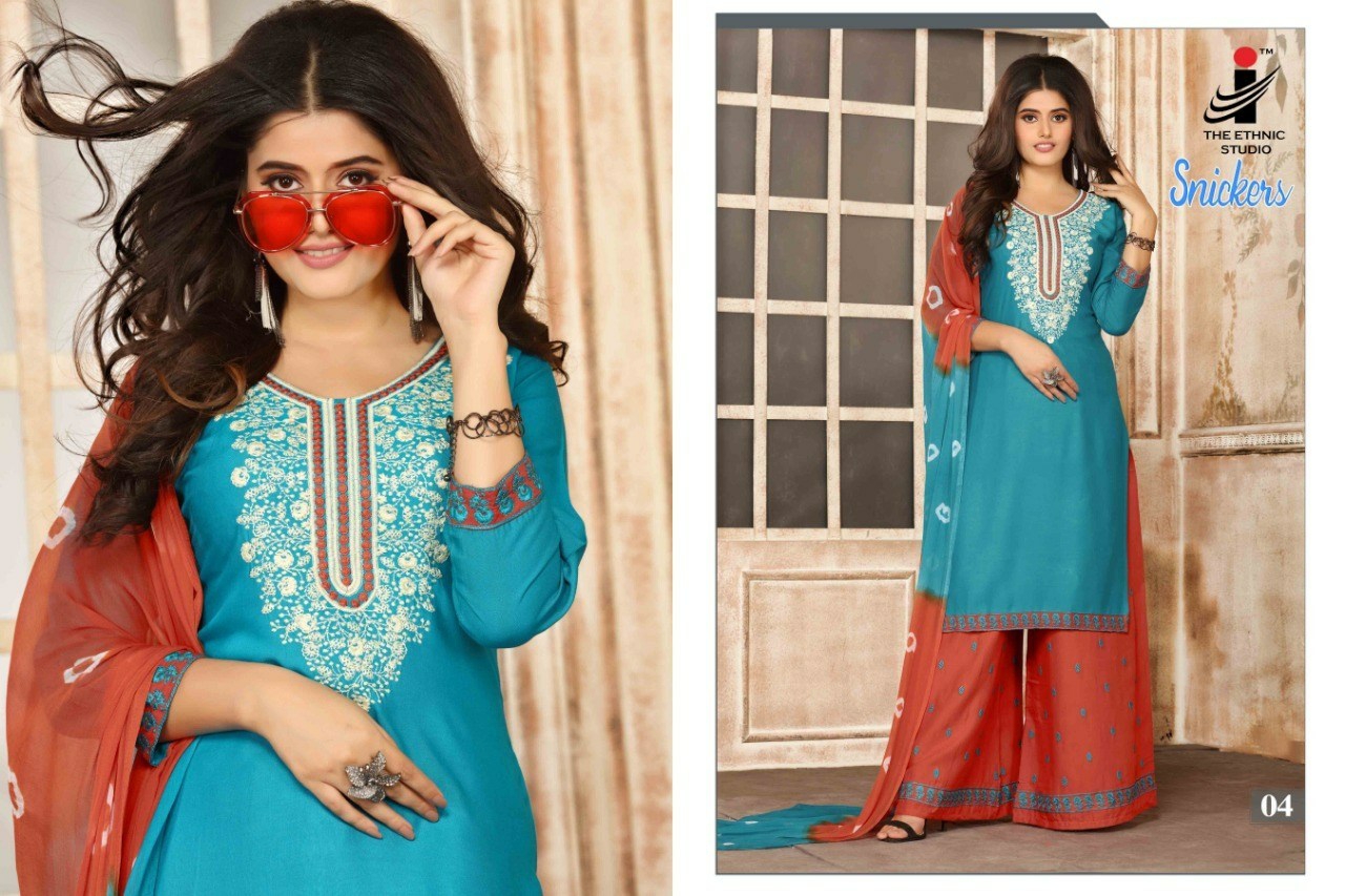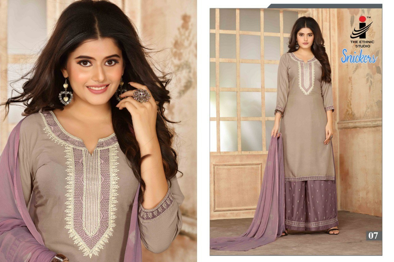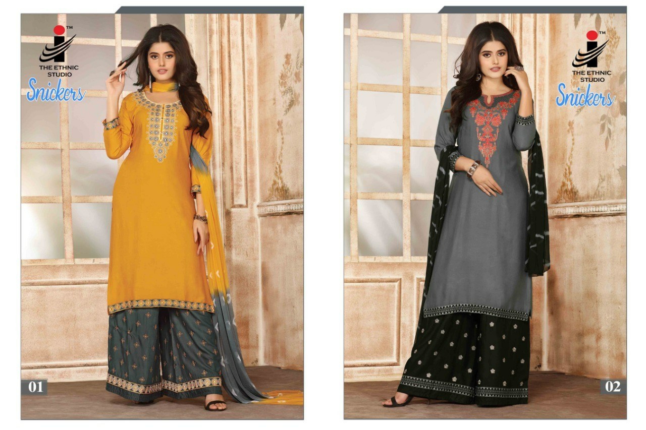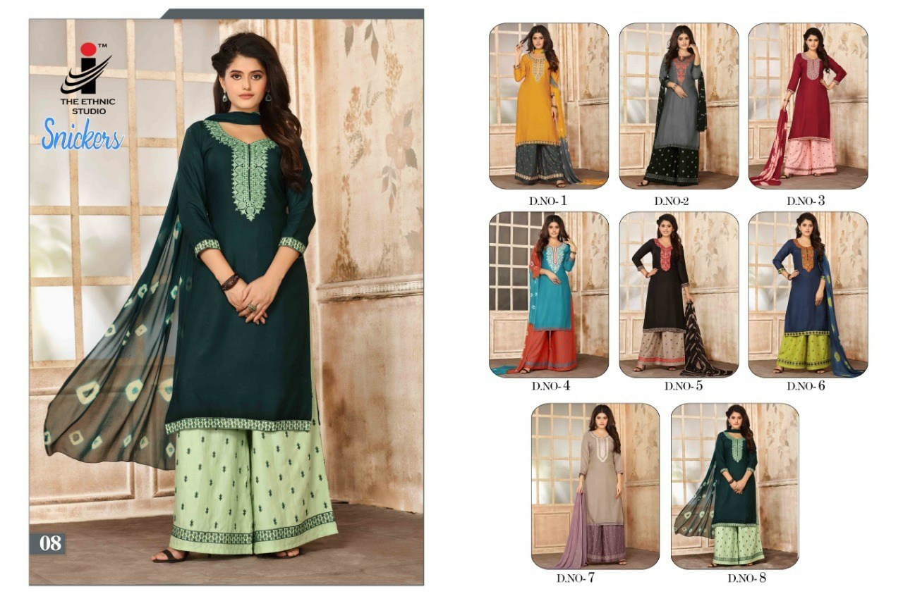 Buy Online Snickers By The Ethnic Studio Reyon Plazzo Suits Wholesale Supplier Gujarat 8 Pcs of Full Catalogue at Wholesale Price. Looking for Snickers By The Ethnic Studio Reyon Plazzo Suits Wholesale Supplier Gujarat Full Catalouge at Best Price? Buy Now Snickers By The Ethnic Studio Reyon Plazzo Suits Wholesale Supplier Gujarat at Wholesale Rate of Rs 5480 with Total 8 Pcs from authroized dealer and supplier of Brand. Cost of Each piece is just only Rs 685 which is very low and affordable price to resale the product in your retail store ,This is Surat based Wholesale Supplier & Dealer of Brand. Click on Brand name to Know more about Brand's products.Call or Whatsapp on 9898838984 for booking or enquiry