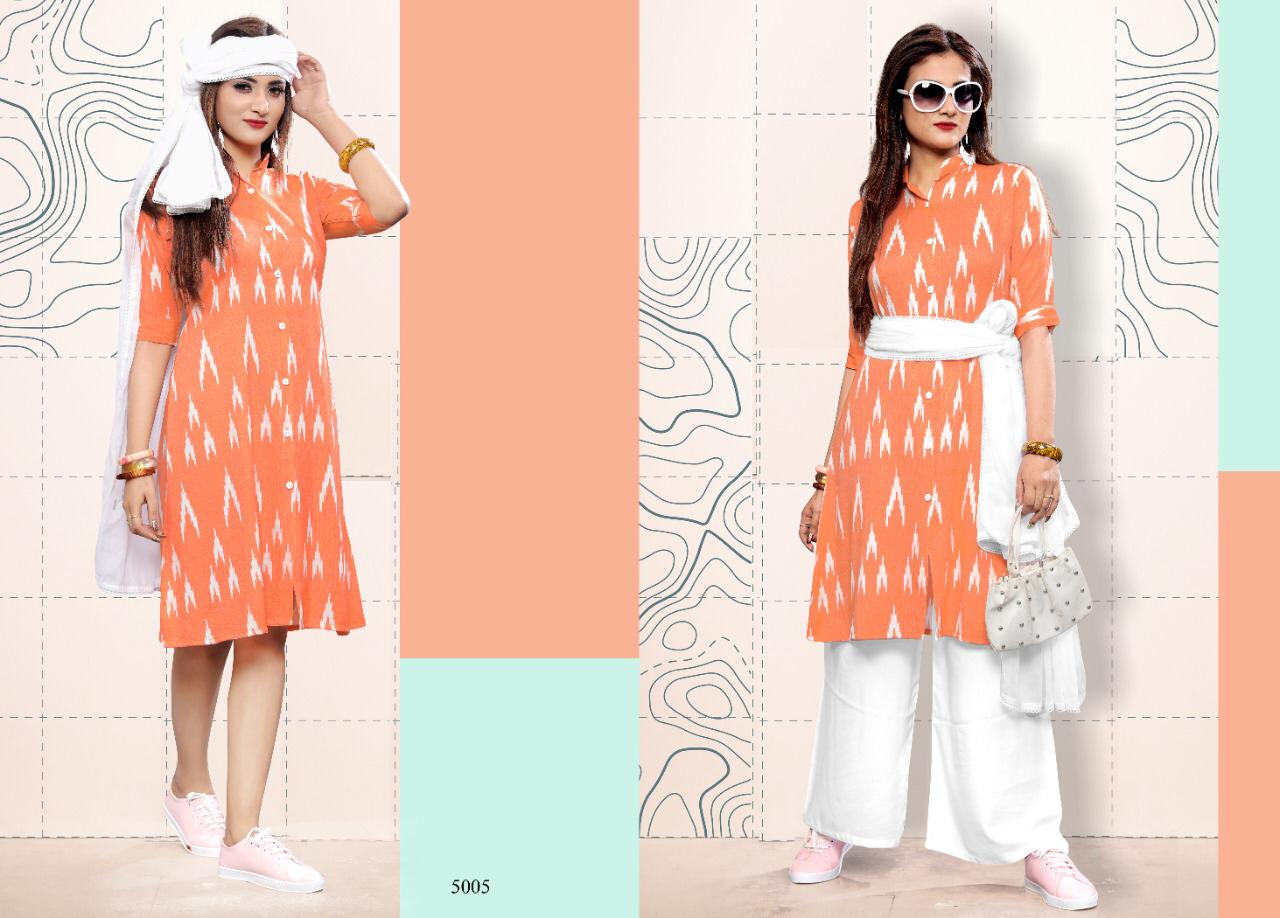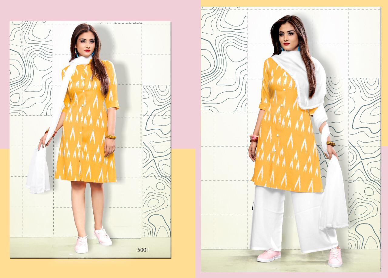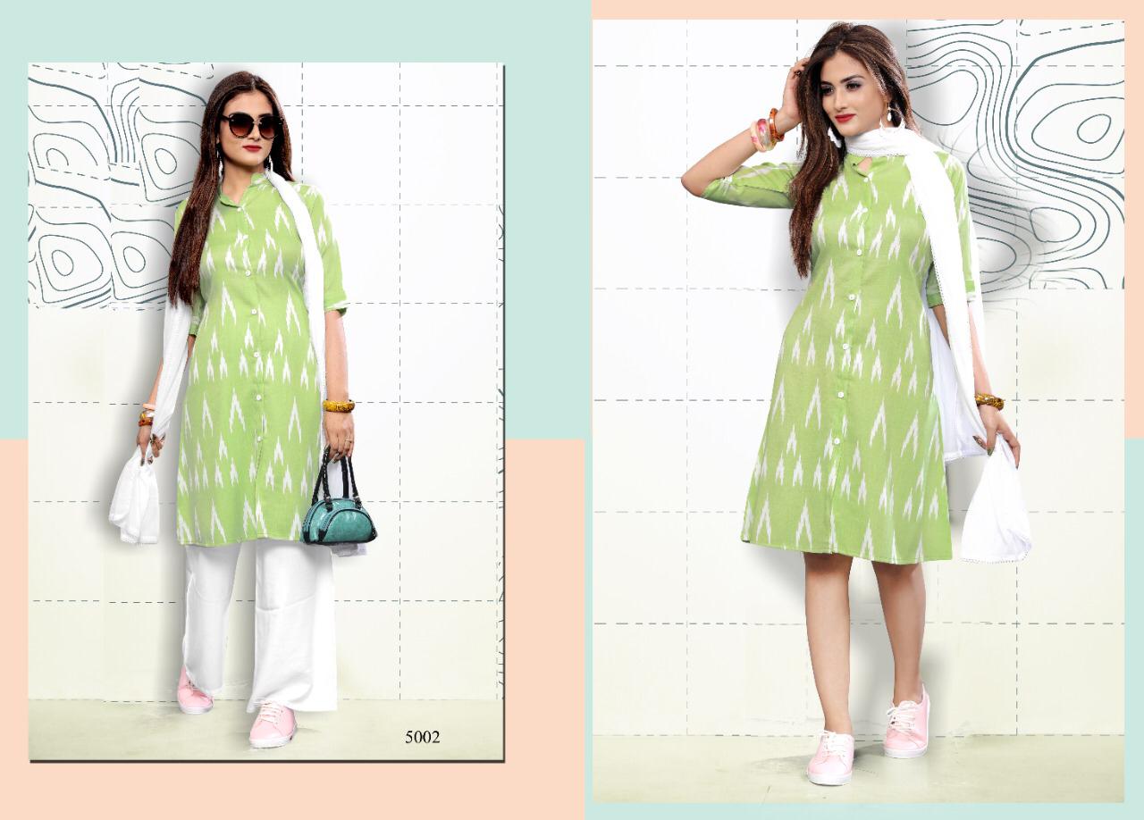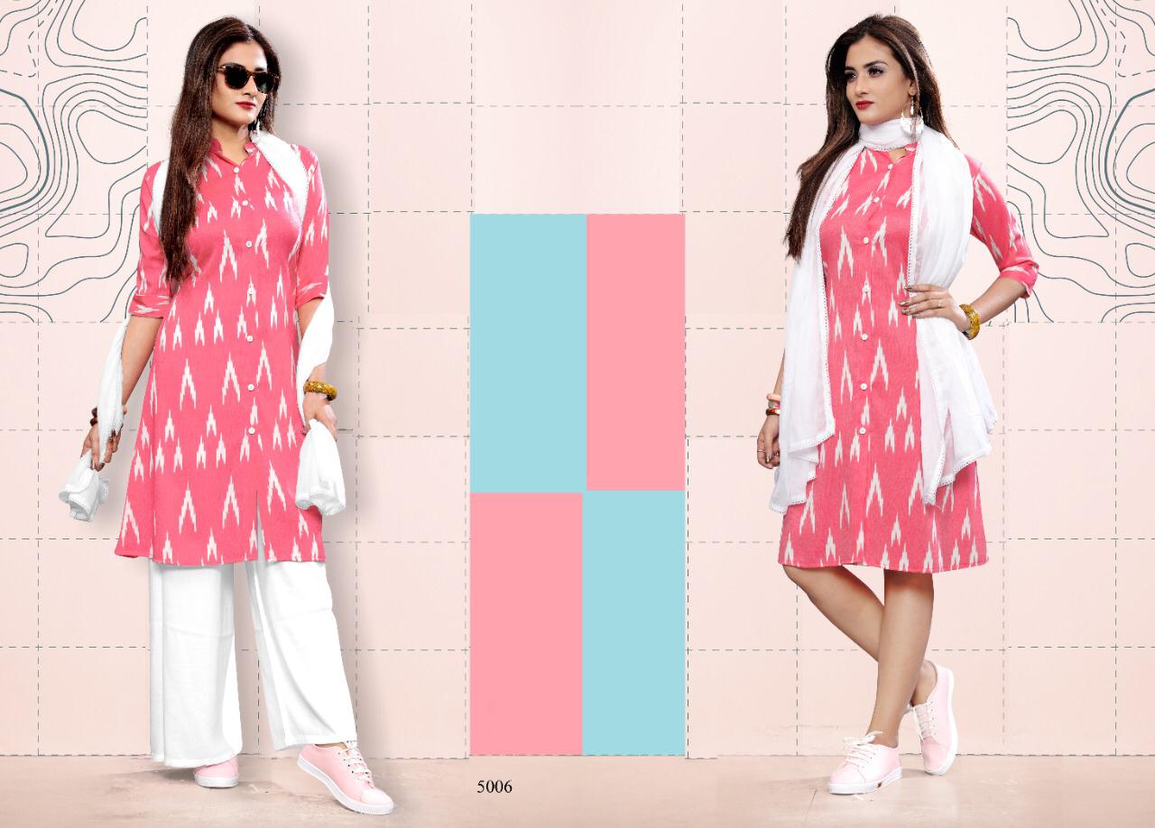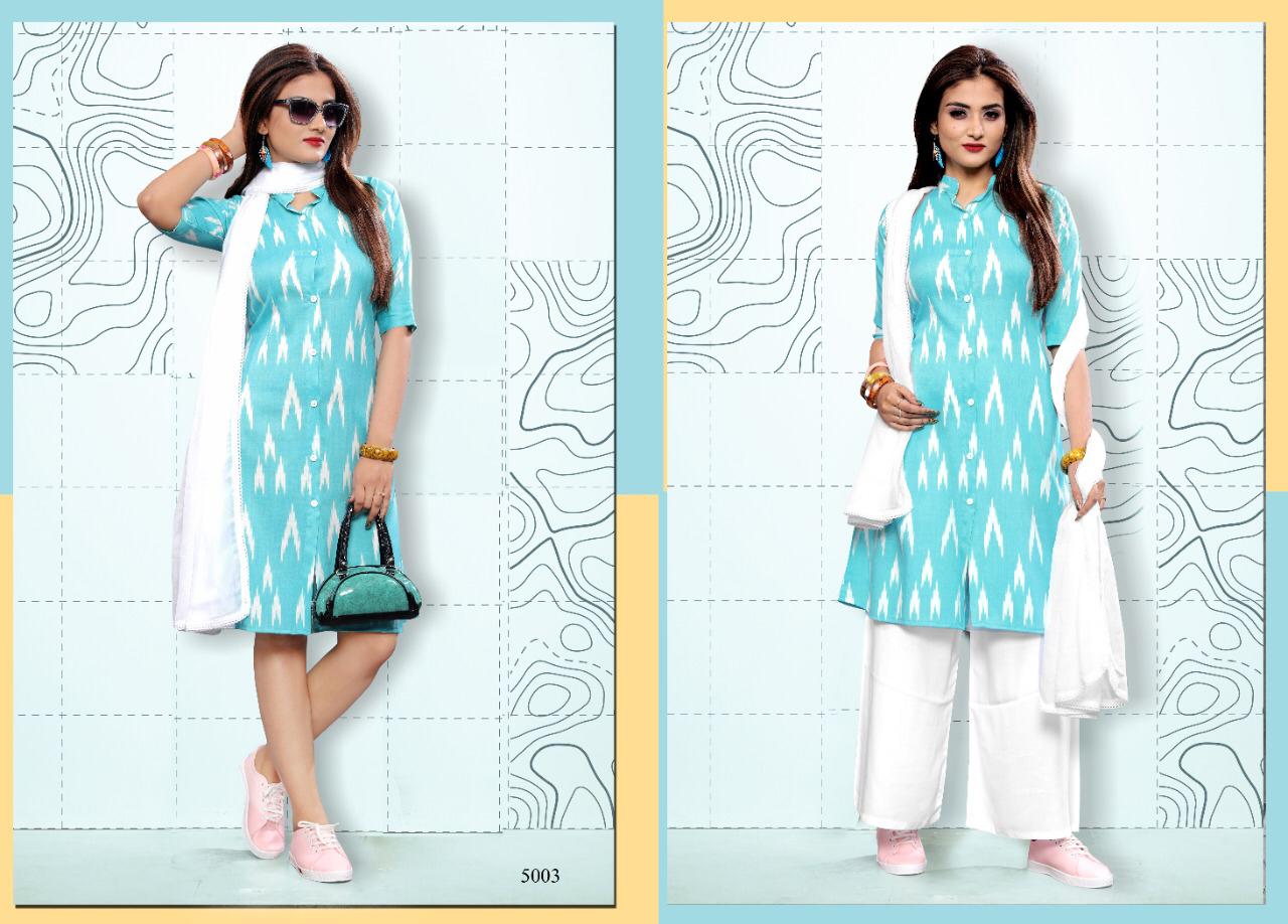 Vee fab India Â? Catalogue name - *?SNOW FALL?* *KURTI WITH DUPATTA* concept *Fabric : iKAT REYON 14 KG QUALITY* *Size:*L(40) XL( 42" ) XXL( 44" )* Additional - pure mal cotton dupatta with four side lace Length 42 *Price 540+gst* Set To Set . Today dispatch |
