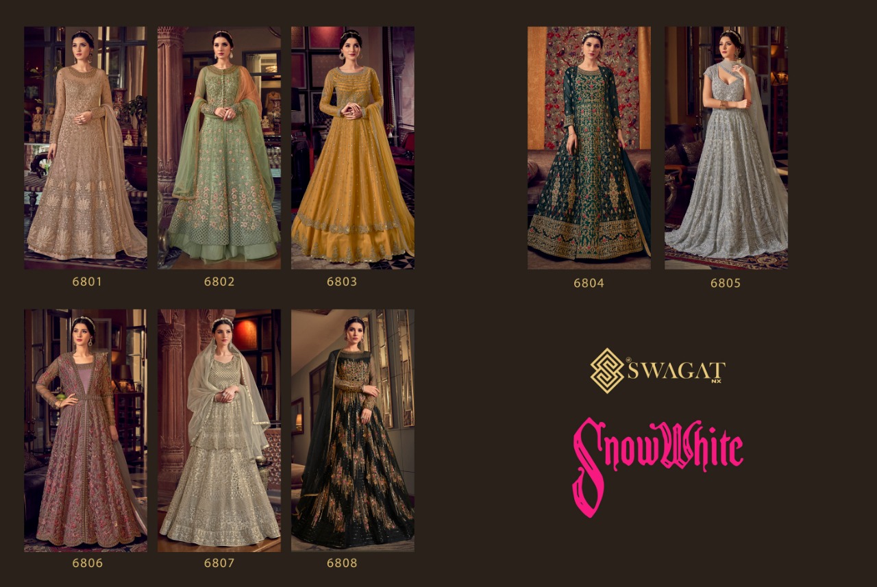 Buy Online Snow White Series 6801 To 6808 Single And Set Stockiest And Supplier From Surat 8 Pcs of Full Catalogue at Wholesale Price. Looking for Snow White Series 6801 To 6808 Single And Set Stockiest And Supplier From Surat Full Catalouge at Best Price? Buy Now Snow White Series 6801 To 6808 Single And Set Stockiest And Supplier From Surat at Wholesale Rate of Rs 27480 with Total 8 Pcs from authroized dealer and supplier of SWAGAT Brand. Cost of Each piece is just only Rs 3435 which is very low and affordable price to resale the product in your retail store ,This is Surat based Wholesale Supplier & Dealer of SWAGAT Brand. Click on Brand name to Know more about SWAGAT Brand's products.Call or Whatsapp on 9898838984 for booking or enquiry