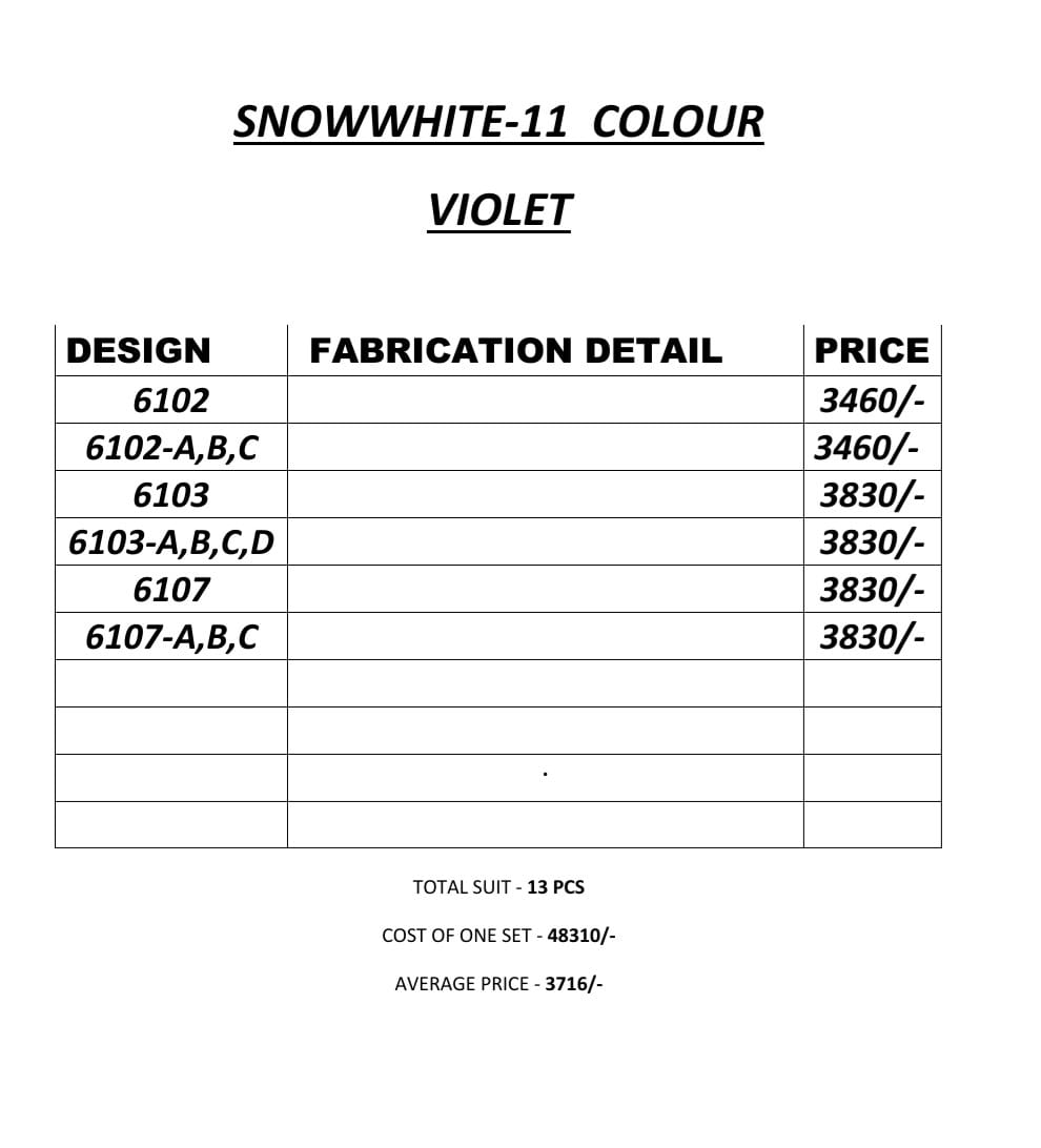 Snowwhite 11 Hit Designs With Colours Designer Suits Set And Single Wholesale Supplier And Dealer Gujarat