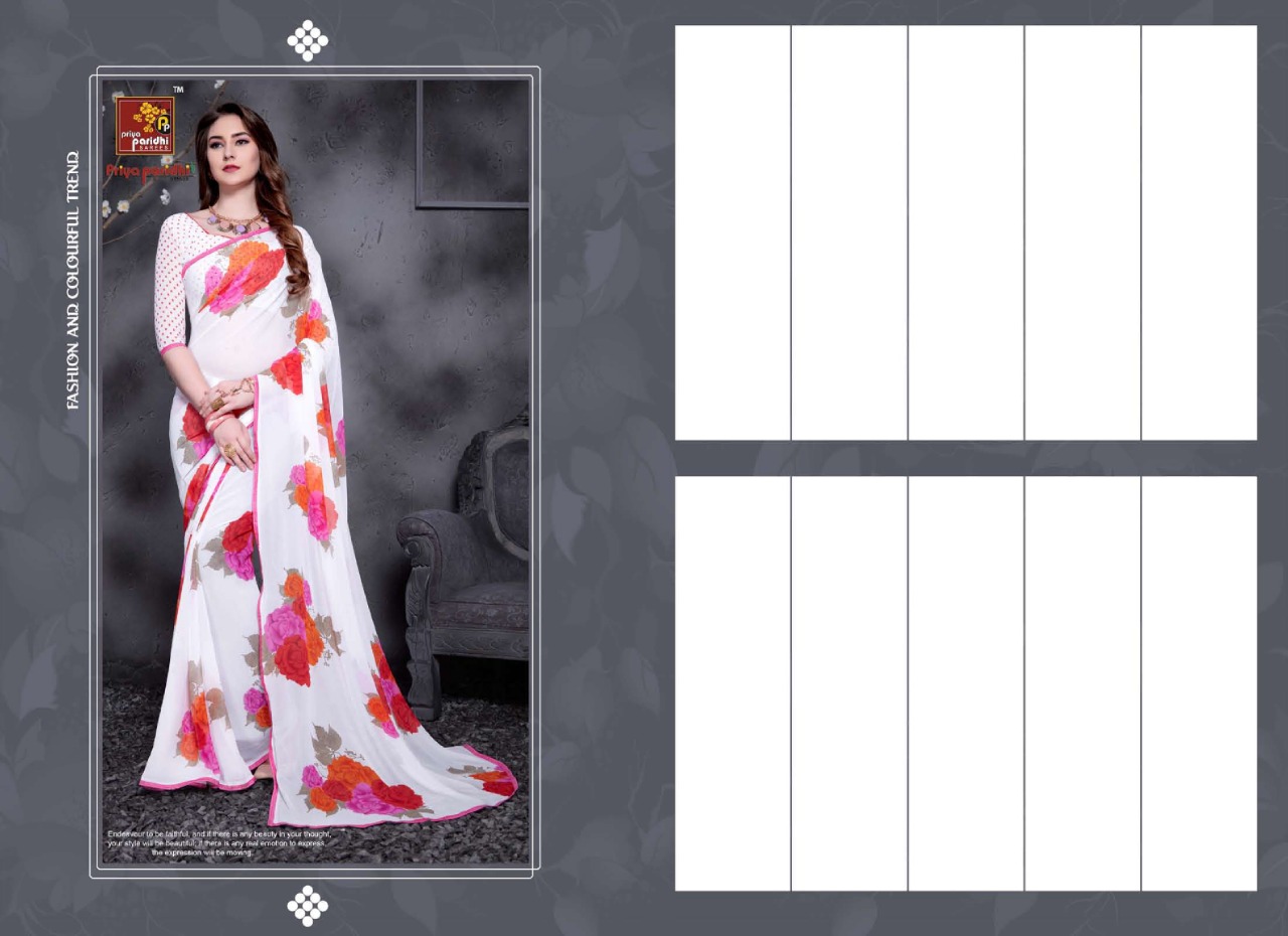 Brand - Priya paridhi . Tyep -Saree. Fabric- Zorgett. Total 10 Pcs in one set . Rate -410 per pcs . Set to set. GST 5 Percent Extra. Catlog name Â? SNOWWHITE VOl-2. Delivery date -24-07-18. Book your order |