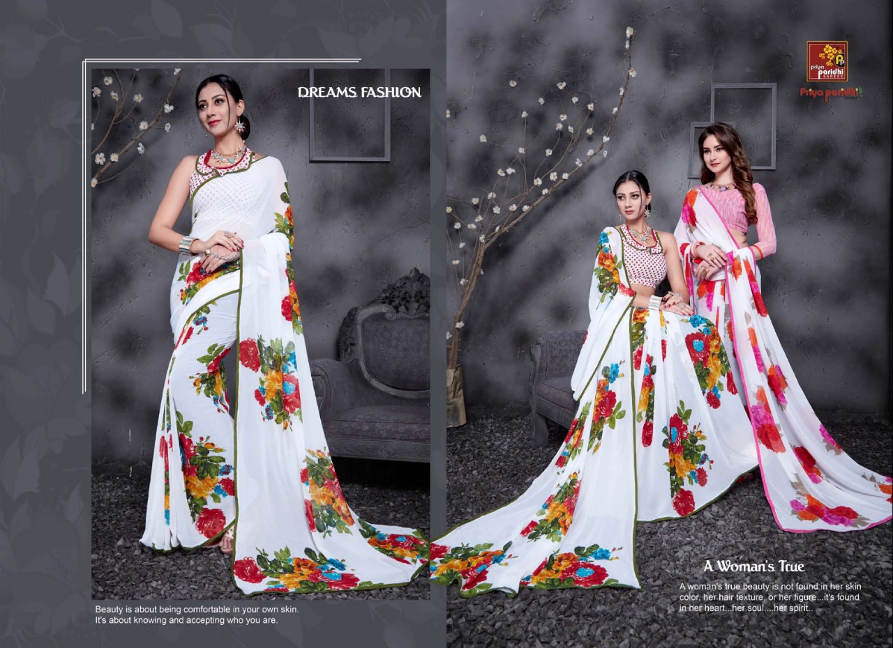 Snowwhite Vol 2 By Priya Paridhi Georgette Printed Sarees Wholesale Supplier And Dealer Surat