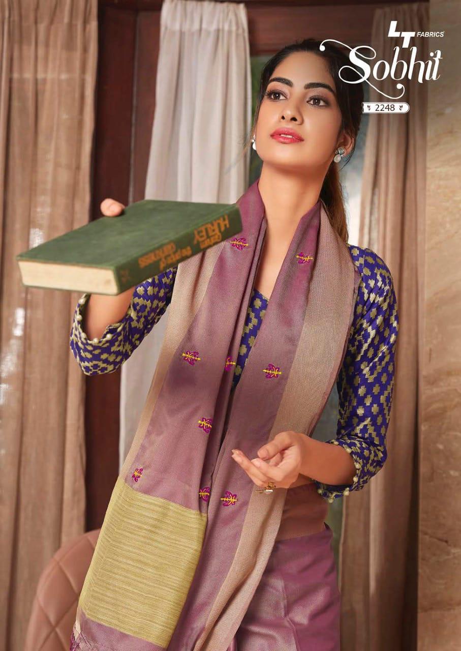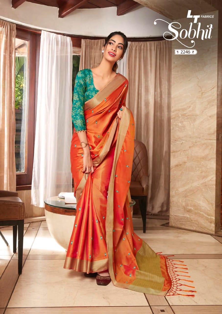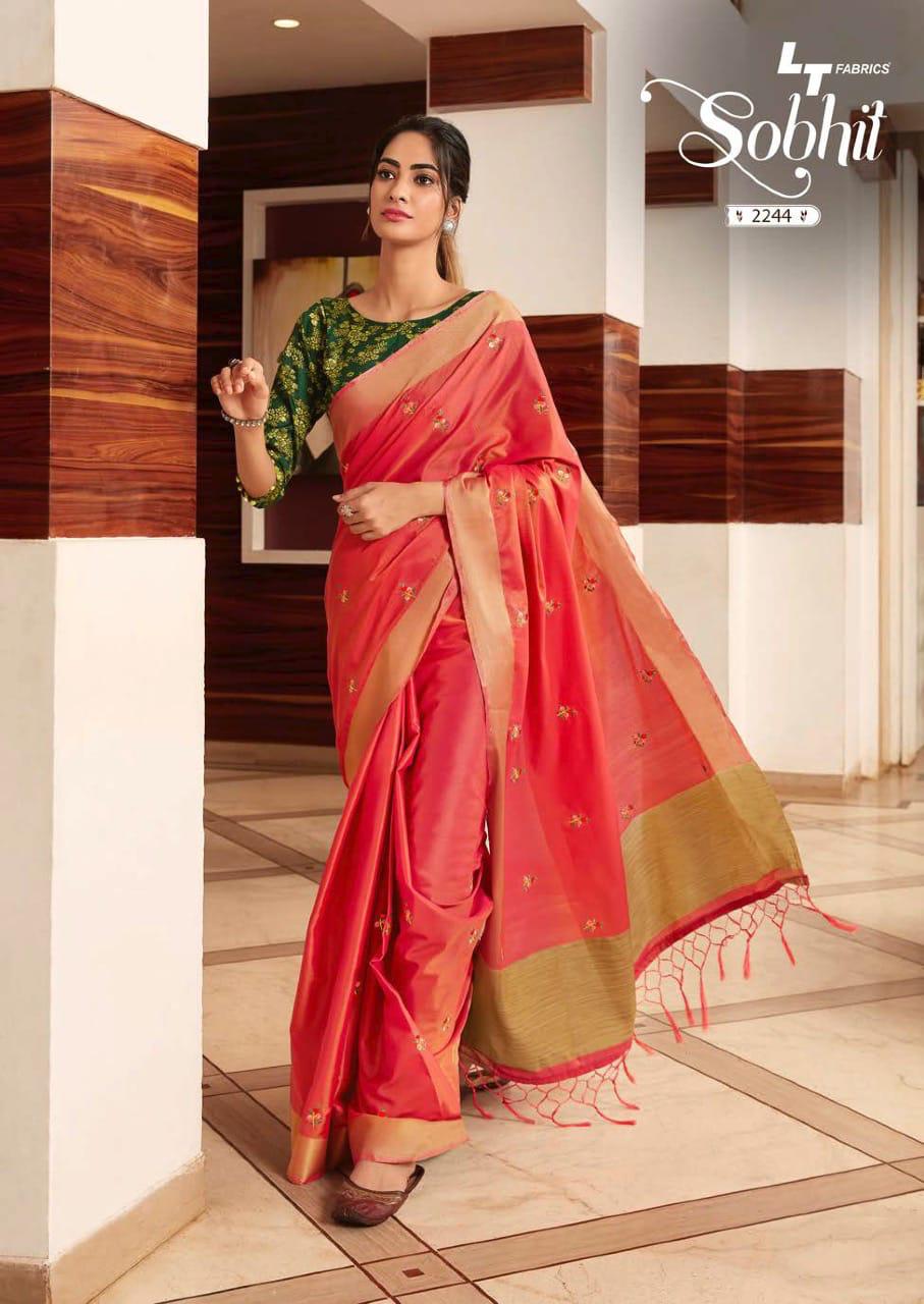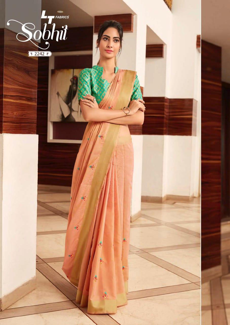L. T. Fashion SOBHIT RATE=895 per Pcs . Set To Set. GST 5 Percent Extra. Delivery from today PCE =10 FABRIC'S=Linen Zari with Resham work and Designer Blouse . |