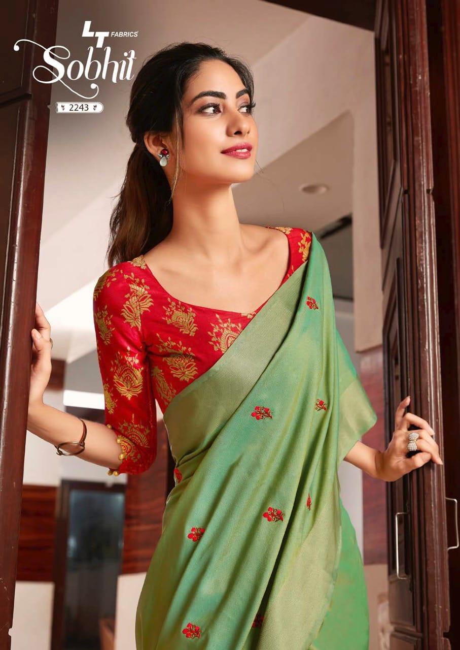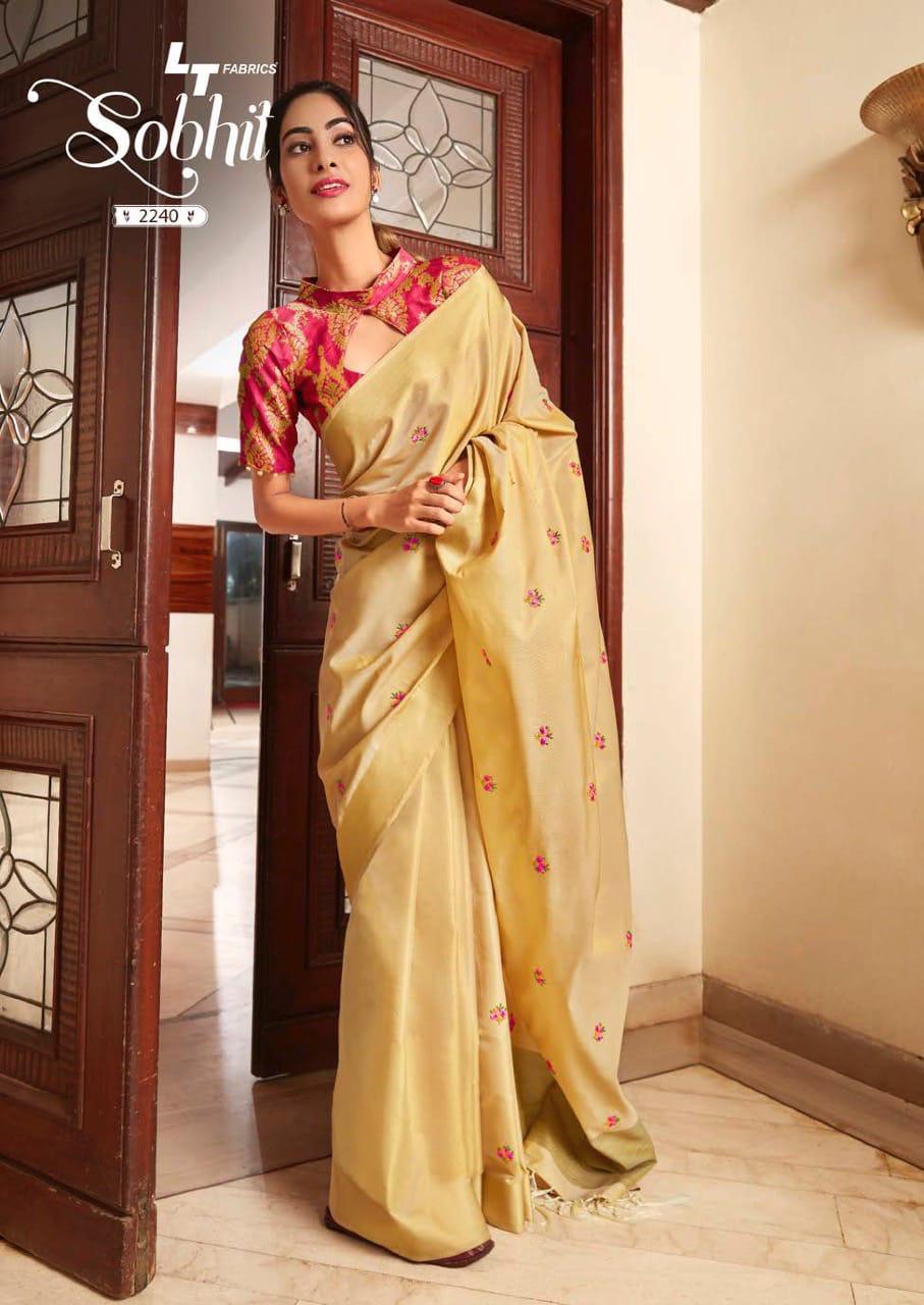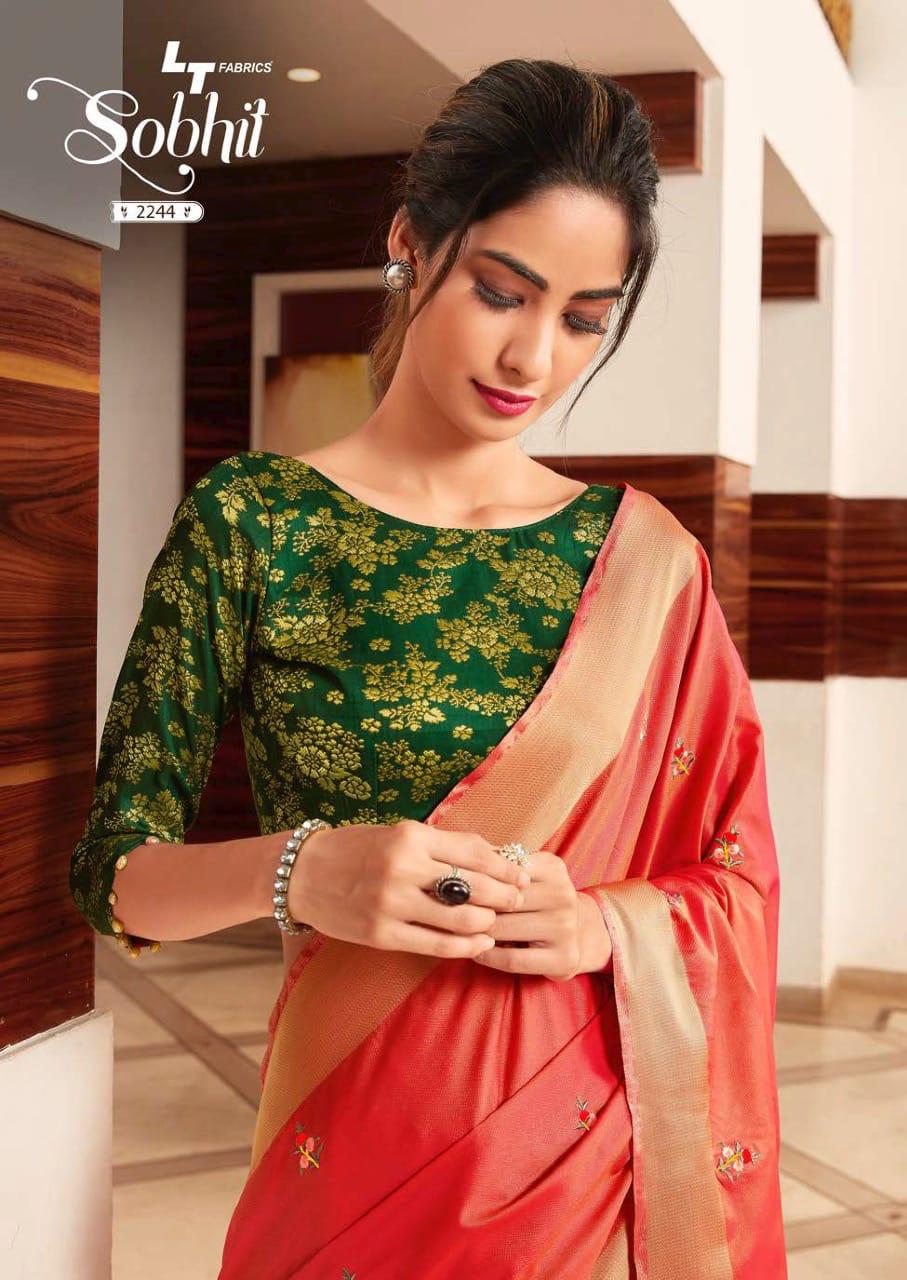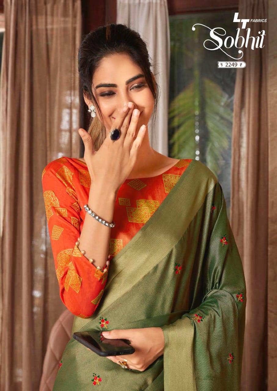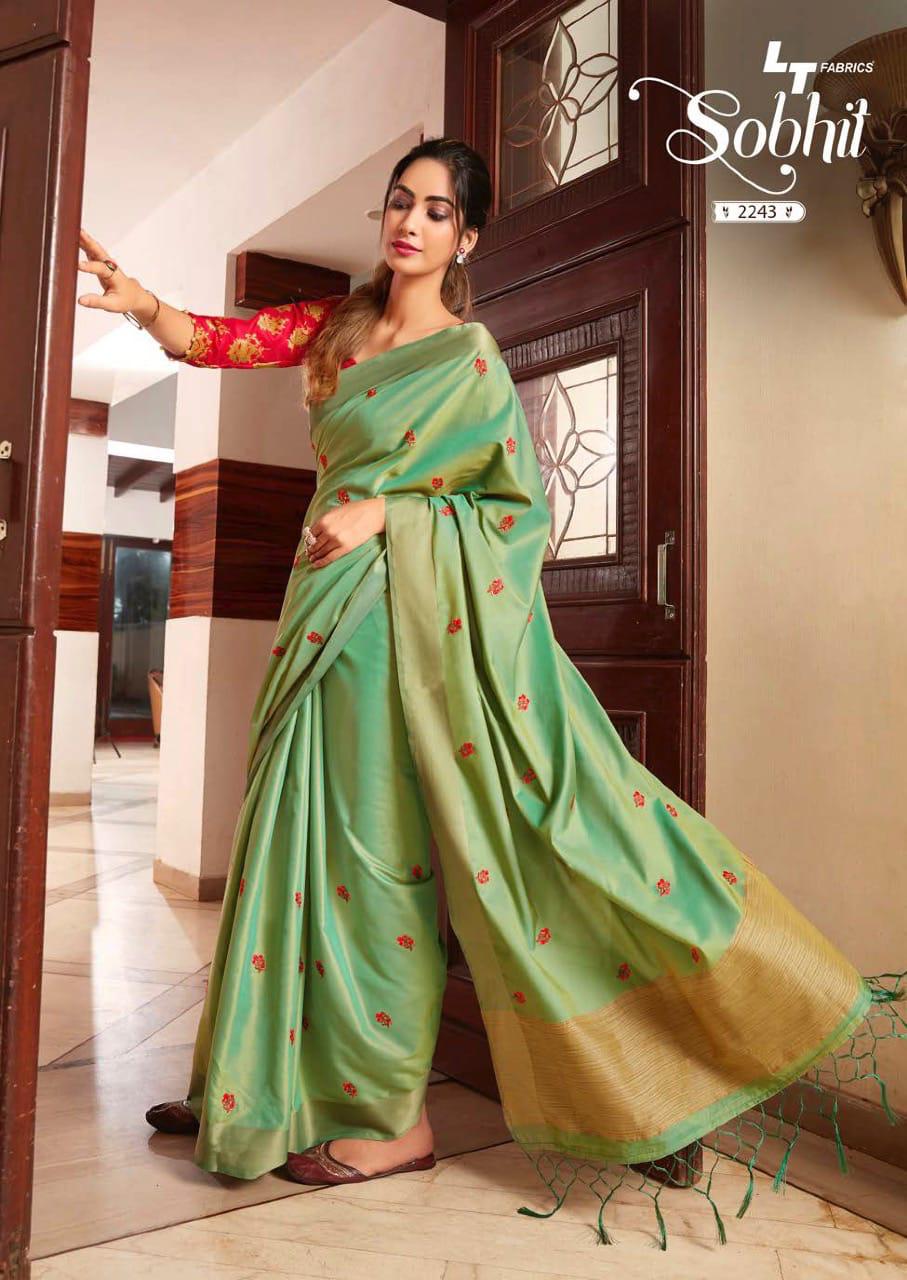 L. T. Fashion SOBHIT RATE=895 per Pcs . Set To Set. GST 5 Percent Extra. Delivery from today PCE =10 FABRIC'S=Linen Zari with Resham work and Designer Blouse . |