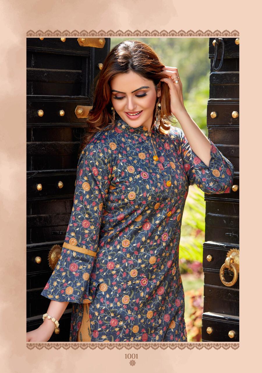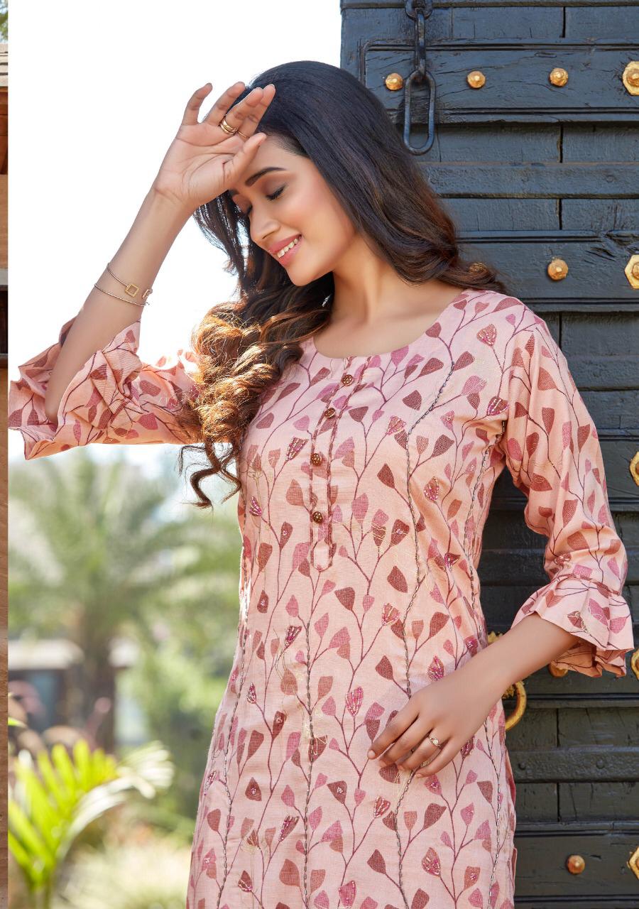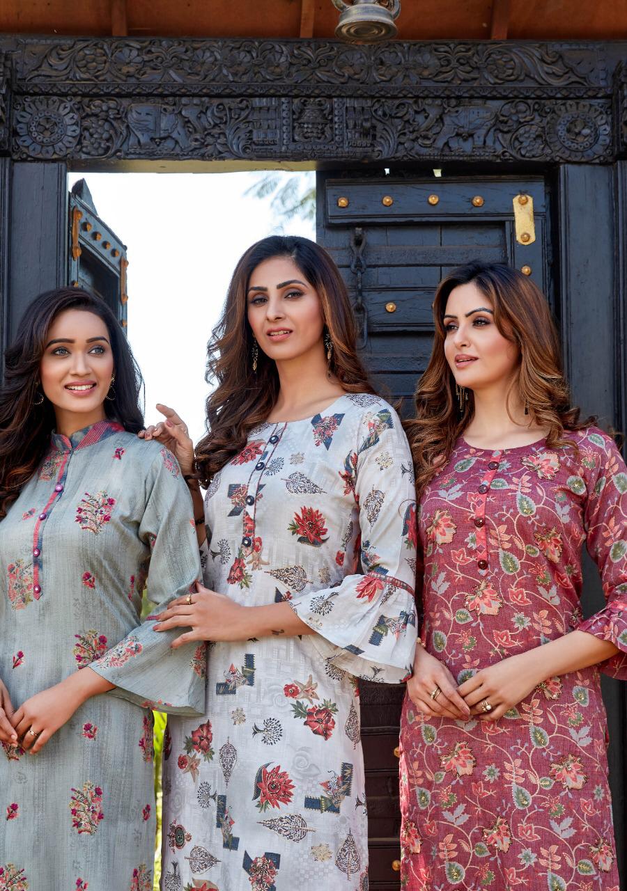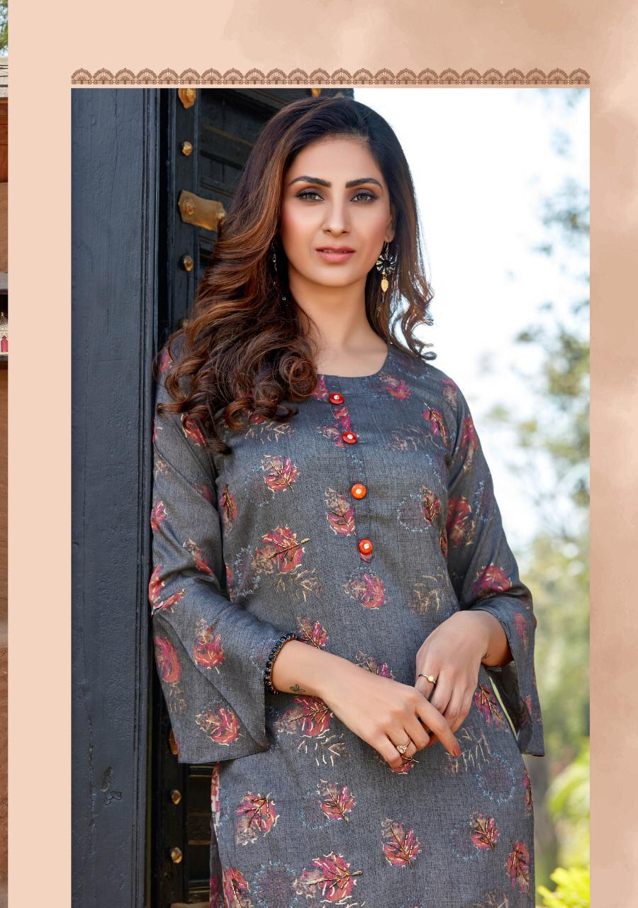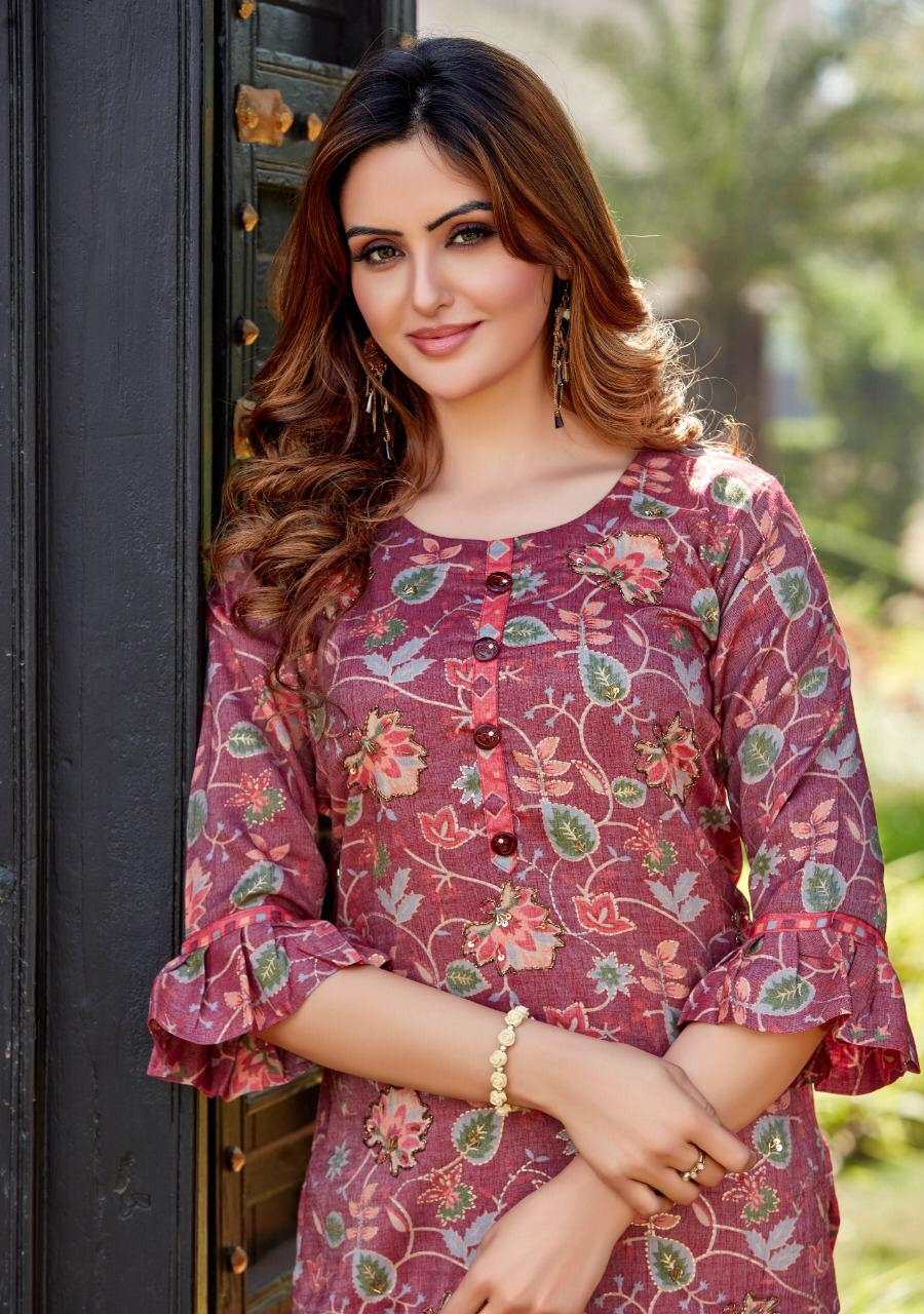 ## *PARRA STUDIO* ## Hello Sir/Madam For This Season Exclusive Designers Kurties *SOFIA VOL 1* Catalogue is Coming Soon. *2 PCS CONCEPT* *7 KURTIES* With *PENT* And Beautiful Catalogue Having Designer Concepts. ? *FABRICS* ? TOP. :- *PURE REYAN FOIL MILL PRINT WITH KHATLI WORK* PENT :- *PURE REYAN FOIL MILL PRINT WITH POCKET* ?Size - *M (38)* *L (40)* *XL (42)* *XXL (44)* *3XL (46)* Lenght - *46*" ?Rate - *720/- ? 5% GST* So Please Hurry up Book ur Orders Now.... Set to set . * Delivery 7-8 days * ?Thanks For ur Kind Support.? *REGARDS* *RANGAT ART* |