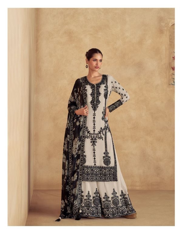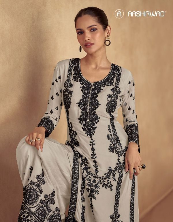 AASHIRWAD DESIGNER PRESENT NEW CATALOG SOFIYA FABRIC DETAILS TOP - PREMIUM CHINNON SILK PLAZZO - PREMIUM CHINNON SILK DUPATTA - PREMIUM CHINNON SILK PRICE FOR XL (42) -2495+12%+ship ************************ 100+ SINGLE |