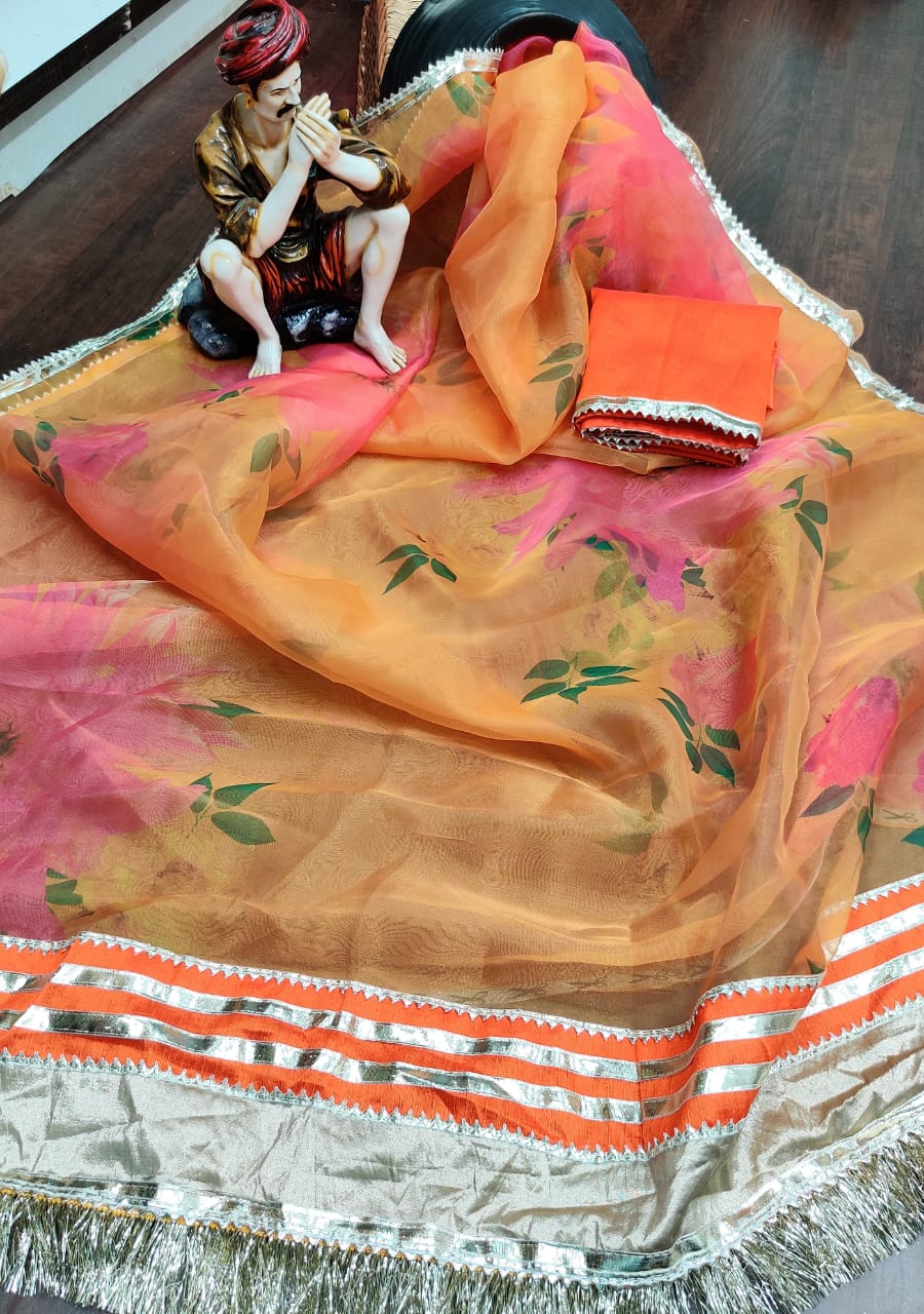 Soft Pure Organza Jaipuri Gotta Less Saree Collection Single Available Manufacturer Traders Surat