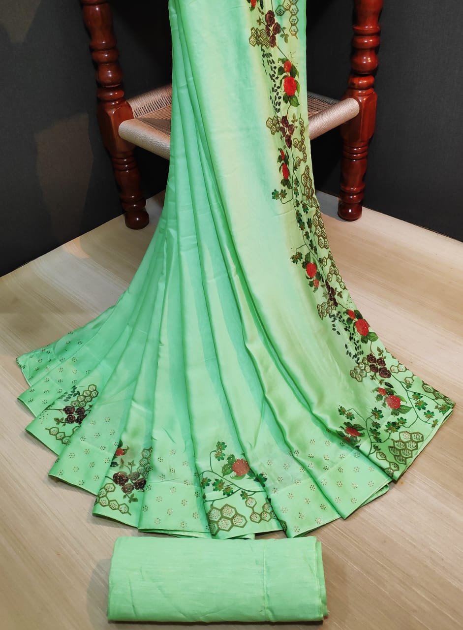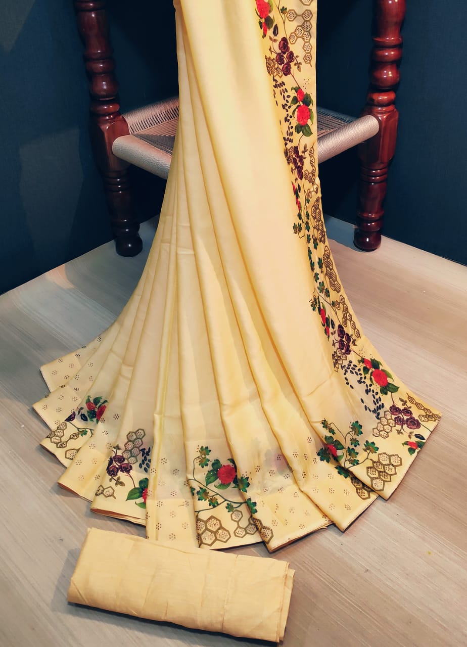 Soft Silk Sarees by nityanx wholesal dealer surat ? collection Launching Soft Silk Sarees ??Fabric : Soft Silk Sarees with beautiful digital print with swaroski diamond ??? ? Wow Price @ *849* ??? Bank 5% gst ship extra We Promise PQR Price Quality and Range ? Note : color may vary slightly due to photography and display strictly no exchange or return for color variations unpacking video must for any sort of complaint |