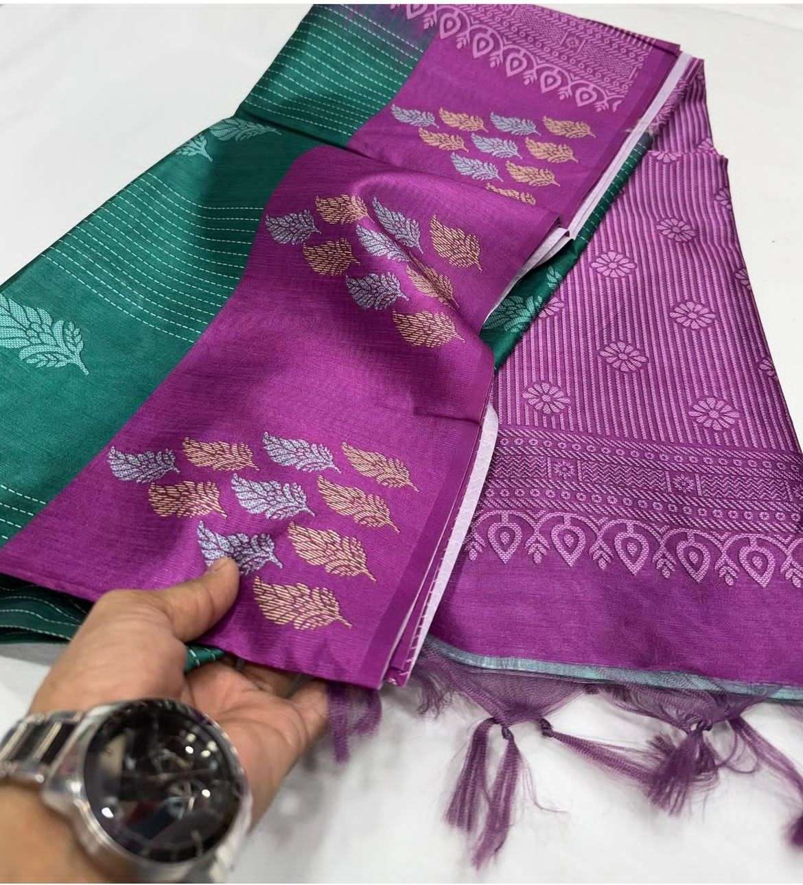 Introducing the elegant Soft Tussar Base Vaibhogam Silk Collection, designed with a beautiful balance of tradition and modern colour combinations. Crafted from premium soft tussar base silk, this saree offers a graceful drape and a rich, refined texture. The saree is enhanced with a classic Vaibhogam silk zari weaving border, adding a subtle festive charm to the overall look. Available in an official colour range, this collection is perfect for those who love stylish yet traditional sarees suitable for festive wear, small functions, and elegant daily occasions. Product Highlights: