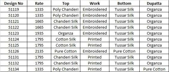- Catalog Name: Sohni Kudi - Fabric: Please refer to attached list - Size Options: - M: 38 - L: 40 - XL: 42 - XXL: 44 - Rate: As per attached list + 12% GST