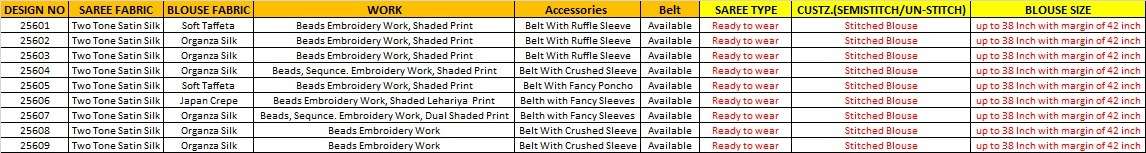 *Price :-* 25601-2695/- 25602-2695/- 25603-2695/- 25604-2795/- 25605-2795/- 25606-2795/- 25607-2795/- 25608-2795/- 25609-2795/- +5% Gst Extra