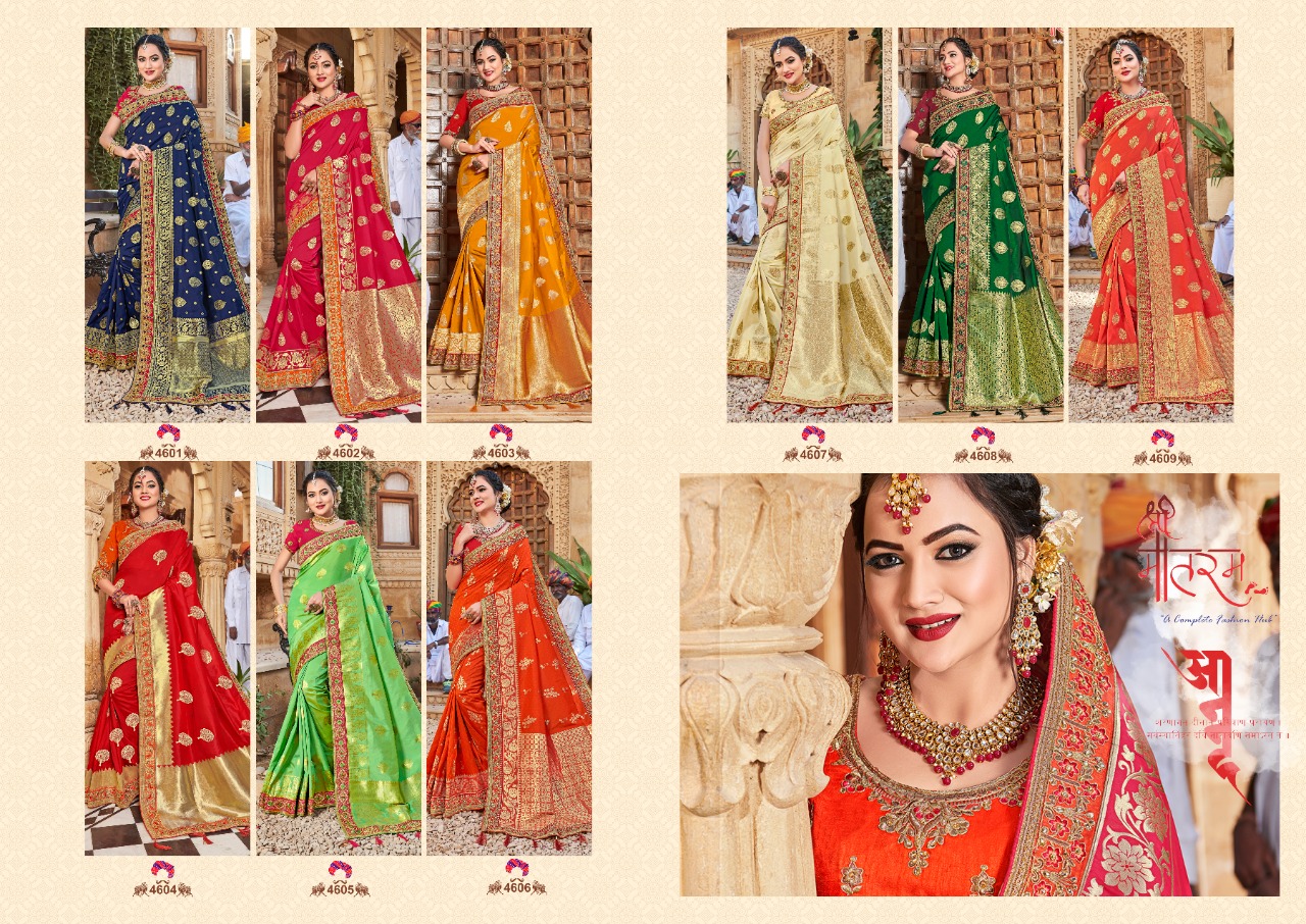 Buy Online Solah Shringar By Shree Maataram Series 4601 Silk Designer Occasion Wear Sarees Set And Single Wholesale Supplier And Dealer India 9 Pcs of Full Catalogue at Wholesale Price. Looking for Solah Shringar By Shree Maataram Series 4601 Silk Designer Occasion Wear Sarees Set And Single Wholesale Supplier And Dealer India Full Catalouge at Best Price? Buy Now Solah Shringar By Shree Maataram Series 4601 Silk Designer Occasion Wear Sarees Set And Single Wholesale Supplier And Dealer India at Wholesale Rate of Rs 21555 with Total 9 Pcs from authroized dealer and supplier of Shree Mathram Brand. Cost of Each piece is just only Rs 2395 which is very low and affordable price to resale the product in your retail store ,This is Surat based Wholesale Supplier & Dealer of Shree Mathram Brand. Click on Brand name to Know more about Shree Mathram Brand's products.Call or Whatsapp on 9898838984 for booking or enquiry
