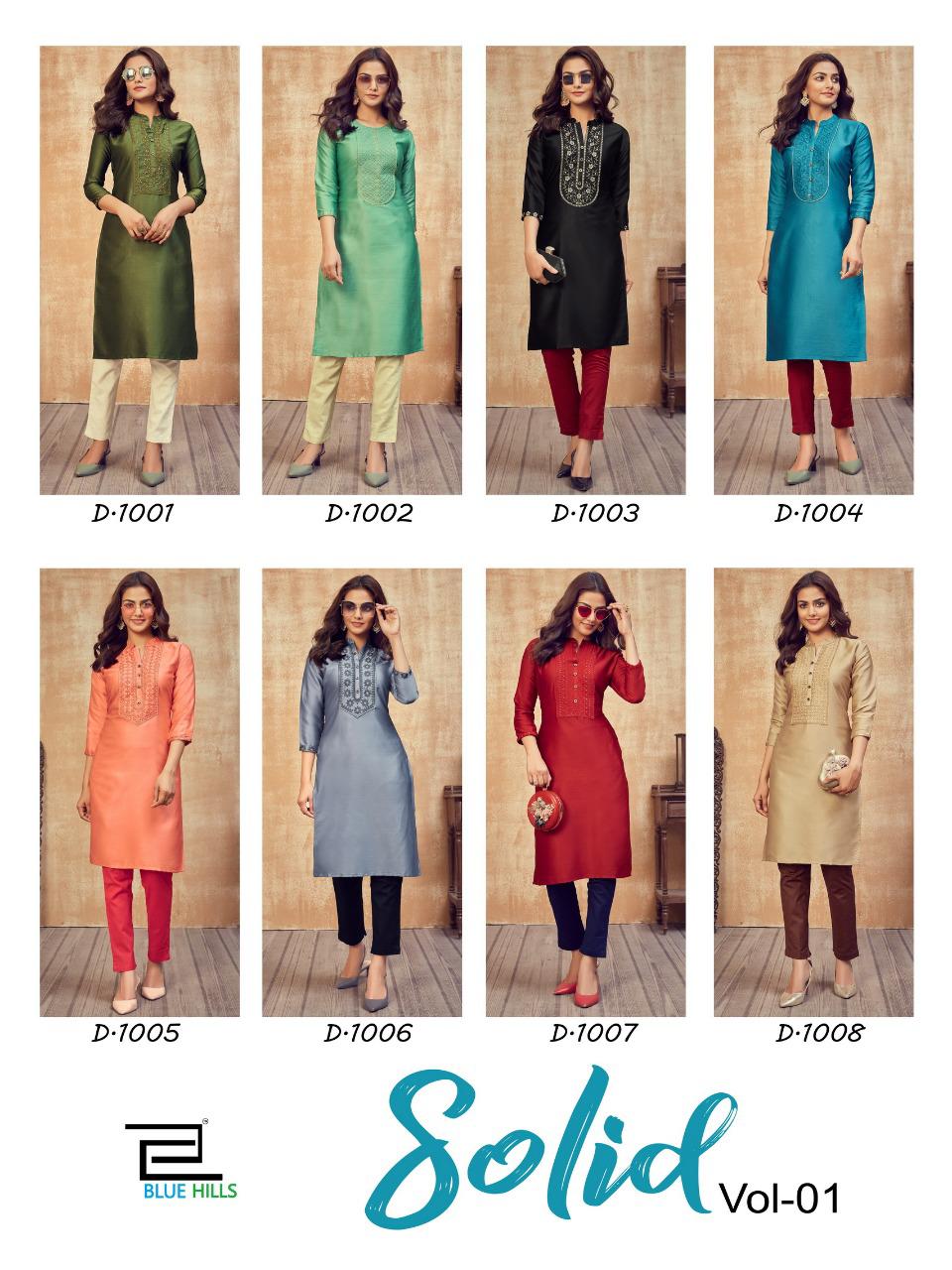 Brand name - *BLUE HILLS* *SOLID* Fabric - D JAM SATIN Concept - straight kurti WITH WORK Size - M L XL 2XL 3XL 8DESIGN SET Rate - *349+GST* Only kurti . Please note . Set to set Dispatch 2 to 3 days |