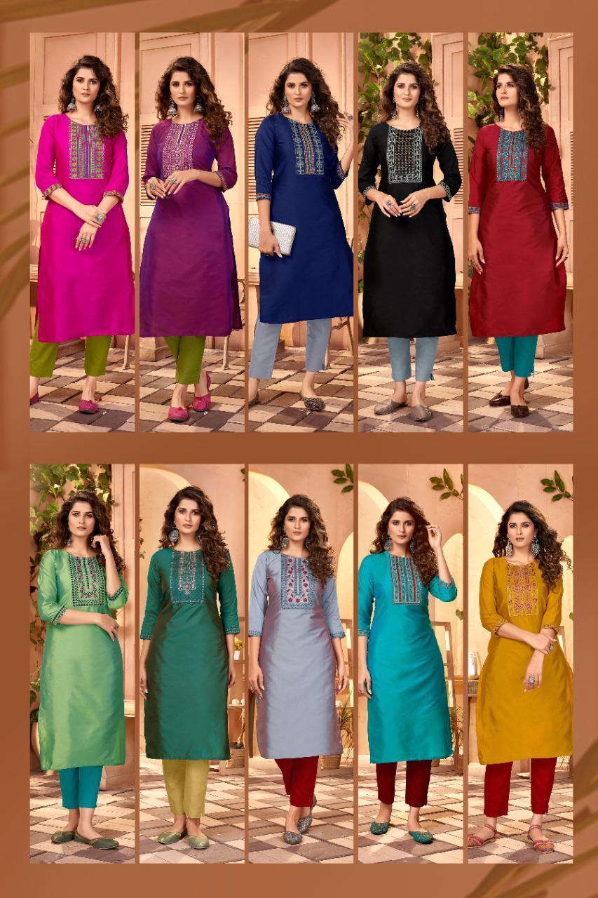 *BLUE HILLS* (KURTI) Presents Catalogue name:- *SOLID VOL 5* ?CLOTH:- *Cotton tapeta* ? Embroidery Style:- *neck embroidery with zari* Pattern-: Straight Cut With Size:- *M,L,XL,XXL,3XL,4XL,5XL,6XL,7XL,8XL* AVAILABLE Rate - 360+GST 10 DESIGNS CATALOGUE Dispatch in 3 to 4 days Set to set |